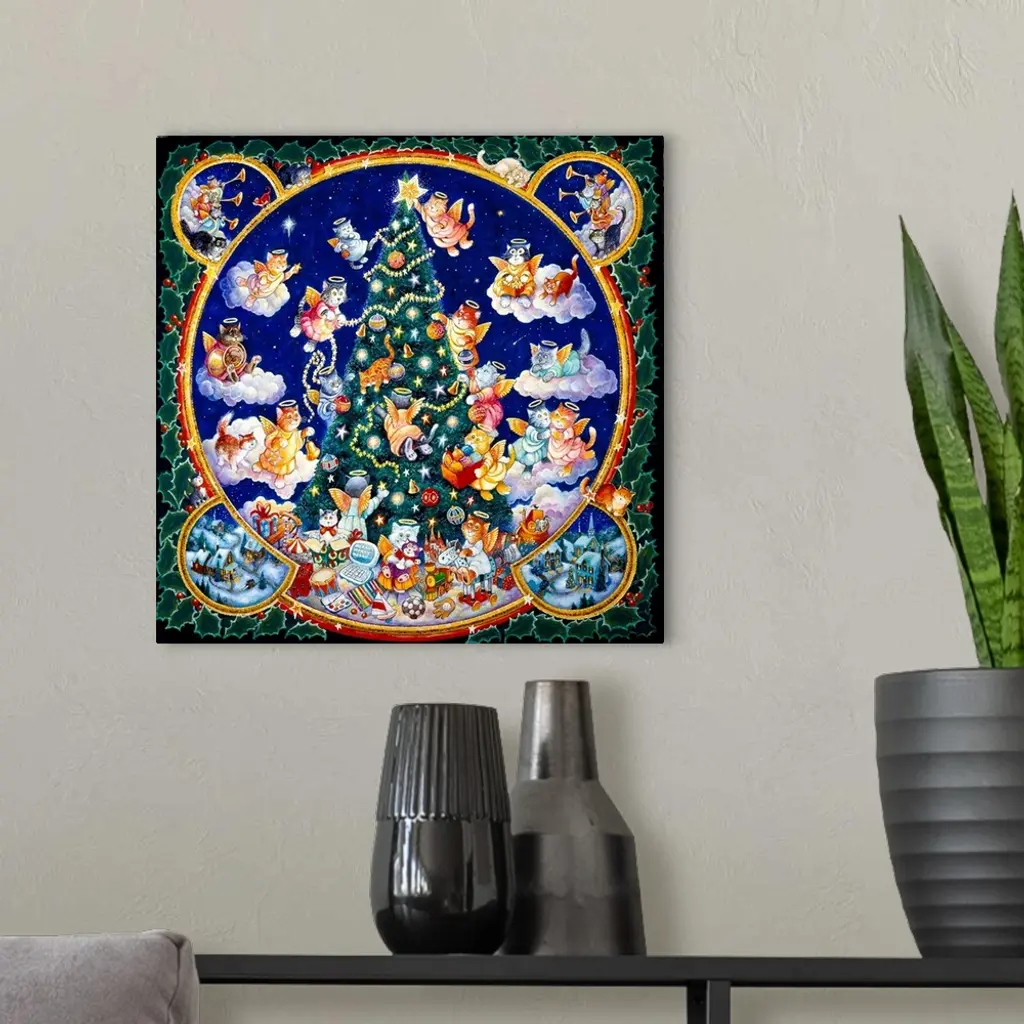 angel cats decorating Christmas tree