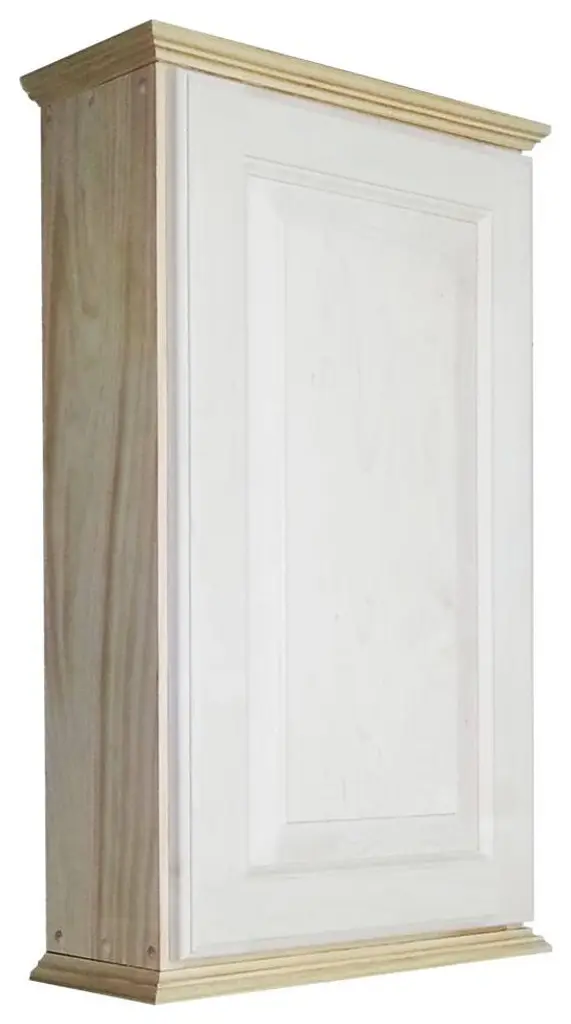 Mounts on the wall with steel mounting brackets inside for an easy installation. With two mounting methods, there is no need to worry about where the studs are in the wall. Three fully adjustable glass shelves slide into our patented shelf supports so they don''t tip or rock. Raised panel door sits on concealed hinges with soft close feature, door is reversible so you can mount it to open either direction. Perfect as a medicine cabinet, spice cabinet, or storage cabinet anywhere. OVERALL Measurements are 25.5h x 15.5w x 5.25"d OVERALL. You''ll have nearly 4.5" of depth INSIDE the cabinet. Unfinished bare wood can be painted or stained as desired. Solid pine cabinet box with solid maple door. Proudly made in Sarasota, FL.