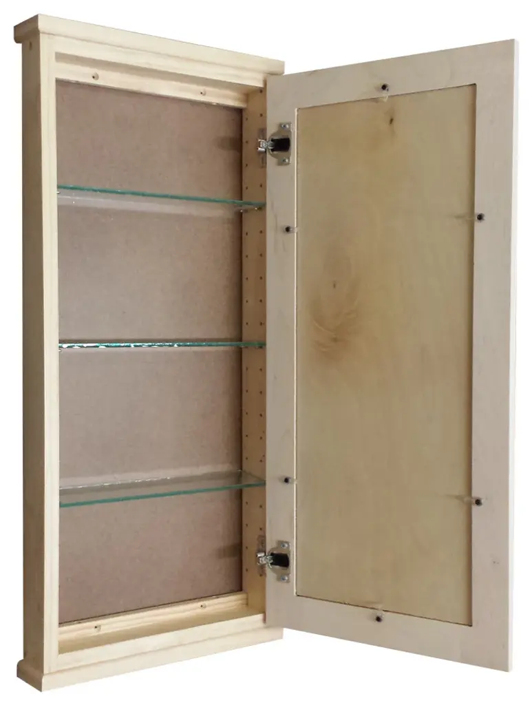 Mounts on the wall with steel mounting brackets inside for an easy installation. With two mounting methods, there is no need to worry about where the studs are in the wall. Four fully adjustable glass shelves slide into our patented shelf supports so they don''t tip or rock. Raised panel door sits on concealed hinges with soft close feature, door is reversible so you can mount it to open either direction. Perfect as a medicine cabinet, spice cabinet, or storage cabinet anywhere. OVERALL Measurements are 37.5h x 15.5w x 4.25"d OVERALL. You''ll have nearly 3.5" of depth INSIDE the cabinet. Unfinished bare wood can be painted or stained as desired. Solid pine cabinet box with solid maple door. Proudly made in Sarasota, FL.