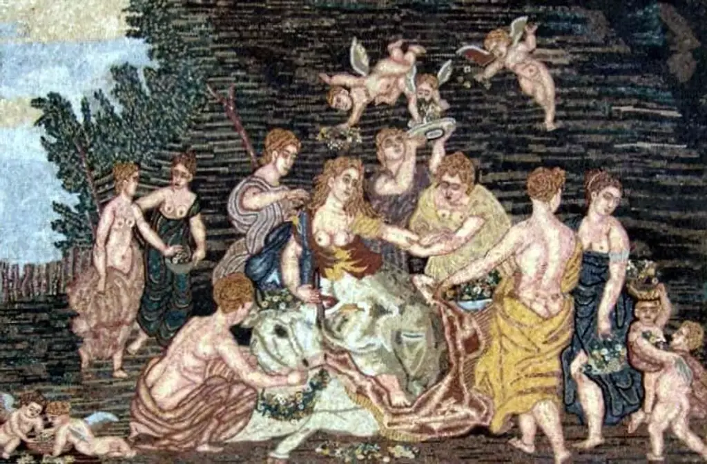 Introducing our exquisite "Angels Scene Mosaic," a stunning piece of art that captures the beauty of nature and the magic of springtime. Handcrafted with love, this remarkable mosaic is made from 100% natural stones and decorative tiles, ensuring that each piece is unique and of the highest quality.The "Angels Scene Mosaic" features an enchanting portrayal of ethereal angels gracefully picking flowers amidst lush green trees. This captivating design celebrates the rebirth of nature, symbolizing hope, renewal, and the joys of the spring season. The intricate details and vibrant colors of the mosaic create a breathtaking visual experience, making it a perfect addition to any home or space that seeks to evoke creativity and serenity.Adding this masterpiece to your mural decoration allows you to transform any wall into a stunning focal point that inspires wonder and delight. Whether placed in a living room, hallway, or even a garden area, this mosaic serves as a reminder of the beauty that surrounds us and the joyous moments of life.Each "Angels Scene Mosaic" is an original work of art, meticulously crafted by skilled artisans who have honed their craft over generations. The use of natural stones not only enhances its aesthetic appeal but also guarantees durability and longevity, making it a timeless addition to your decor.Bring the spirit of spring and the charm of divine beings into your home with the "Angels Scene Mosaic." Elevate your decor and create a serene, artistic atmosphere that resonates with peace and beauty. Order yours today and let the elegance of this mosaic enrich your living space for years to come!
