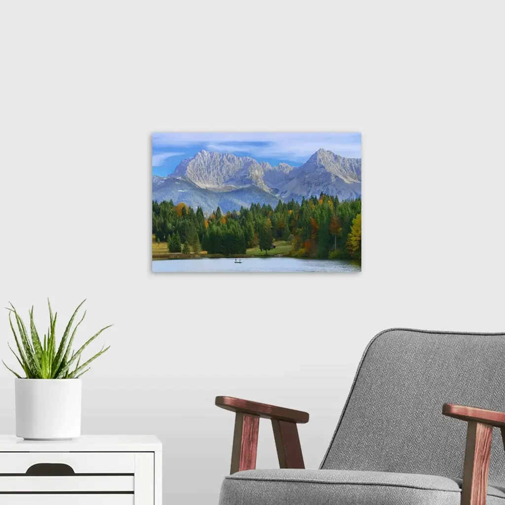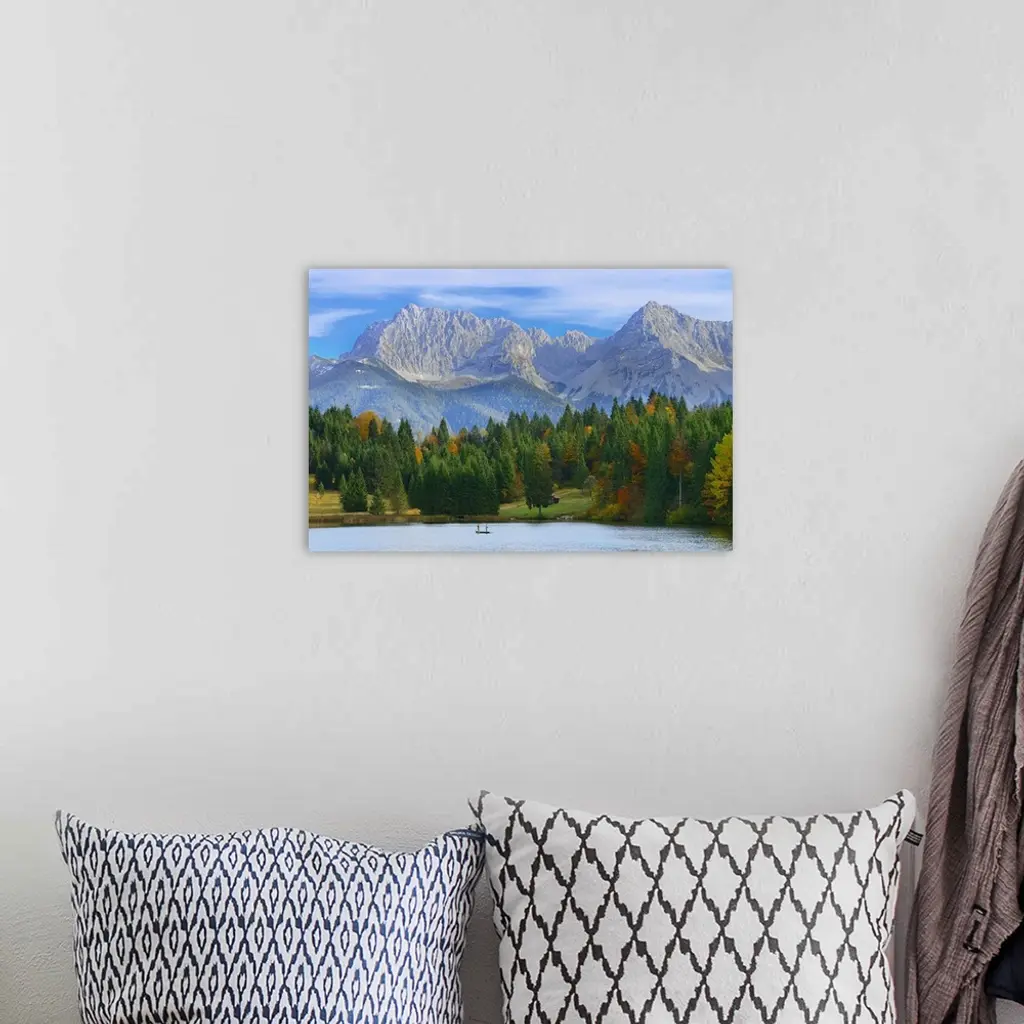 Anglers, Lake Geroldsee With Karwendel Mountain Range, Upper Bavaria, Germany