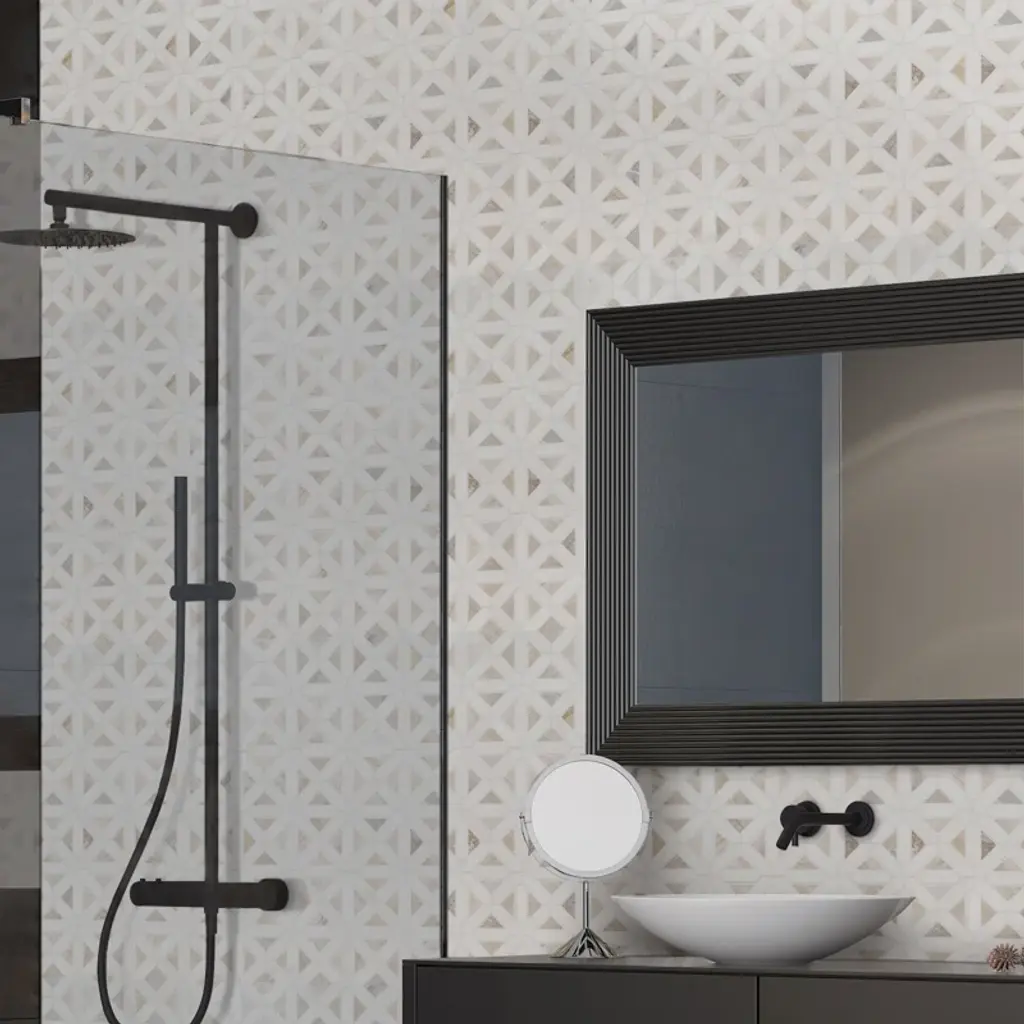 Angora Geometric 12" X 12" Polished Marble Mosaic Floor And Wall Tile