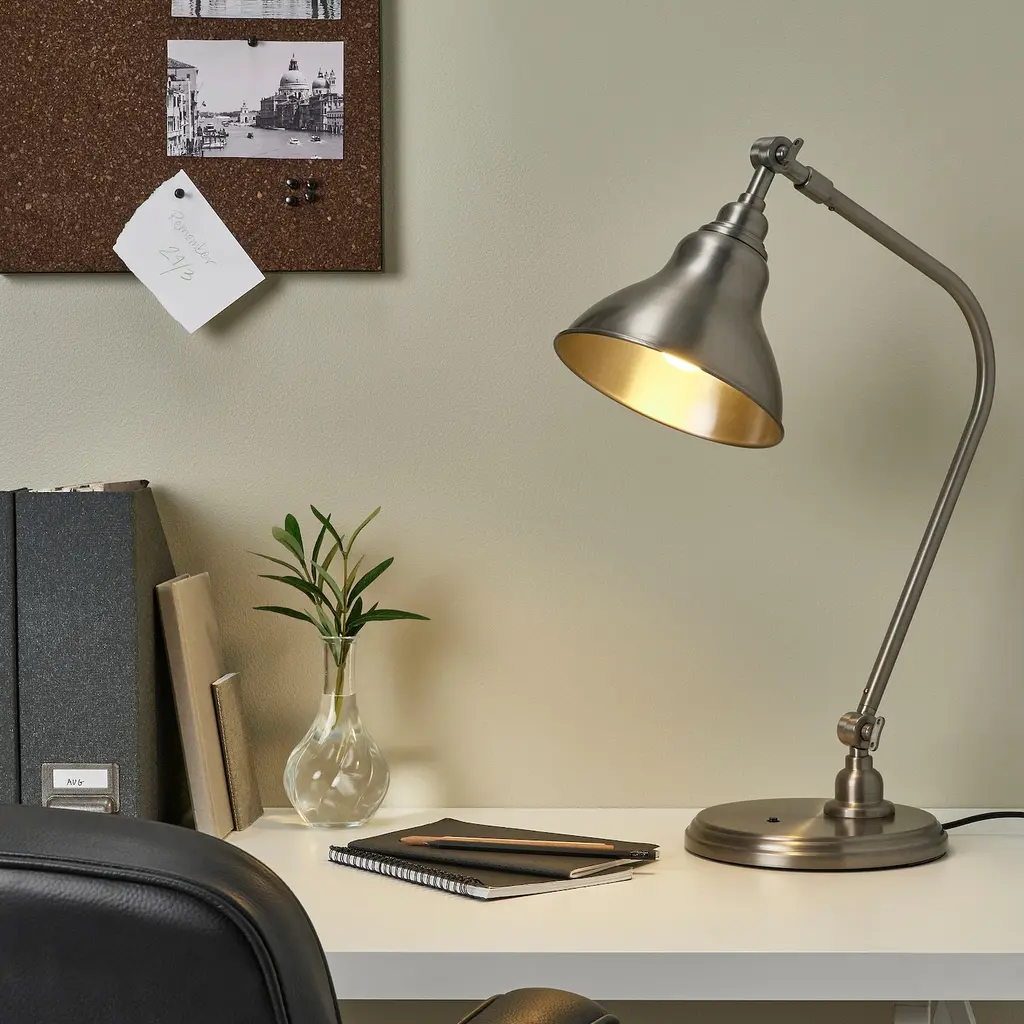 ANKARSPEL Work lamp with LED bulb - pewter effect. You can easily direct the light where you want it because the lamp arm and head are adjustable. Provides a directed light that is great for reading. LED light bulb included (E26).