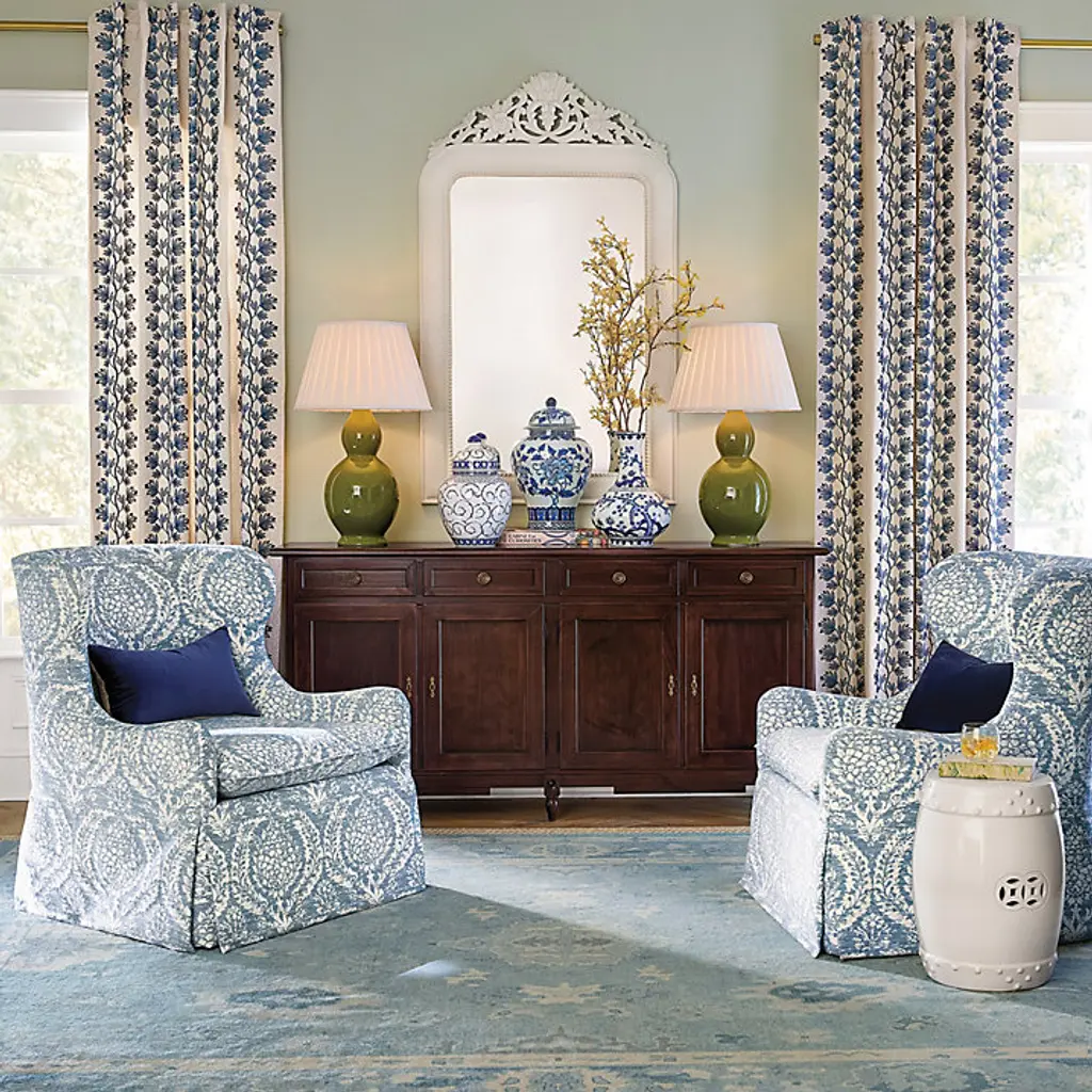 Our Annabelle Chambray InsideOut Performance Fabric takes the continental look to places where kids, pets and spills are regular guests, indoors and out. The oversized floral medallions are jacquard loomed in a thick, chenille-like weave of cleanable, ultra-durable UV polyester. This weather-loving, family-friendly fabric by the yard is ideal for upholstery, drapery and decorative pillows in the breakfast nook, family room, porch and patio. Ballard Designs Performance Fabrics by InsideOut features: Ballard offers free fabric swatches. Shipping and Processing fees apply. Ten swatches maximum. We’re sorry, cut fabric is non-returnable.