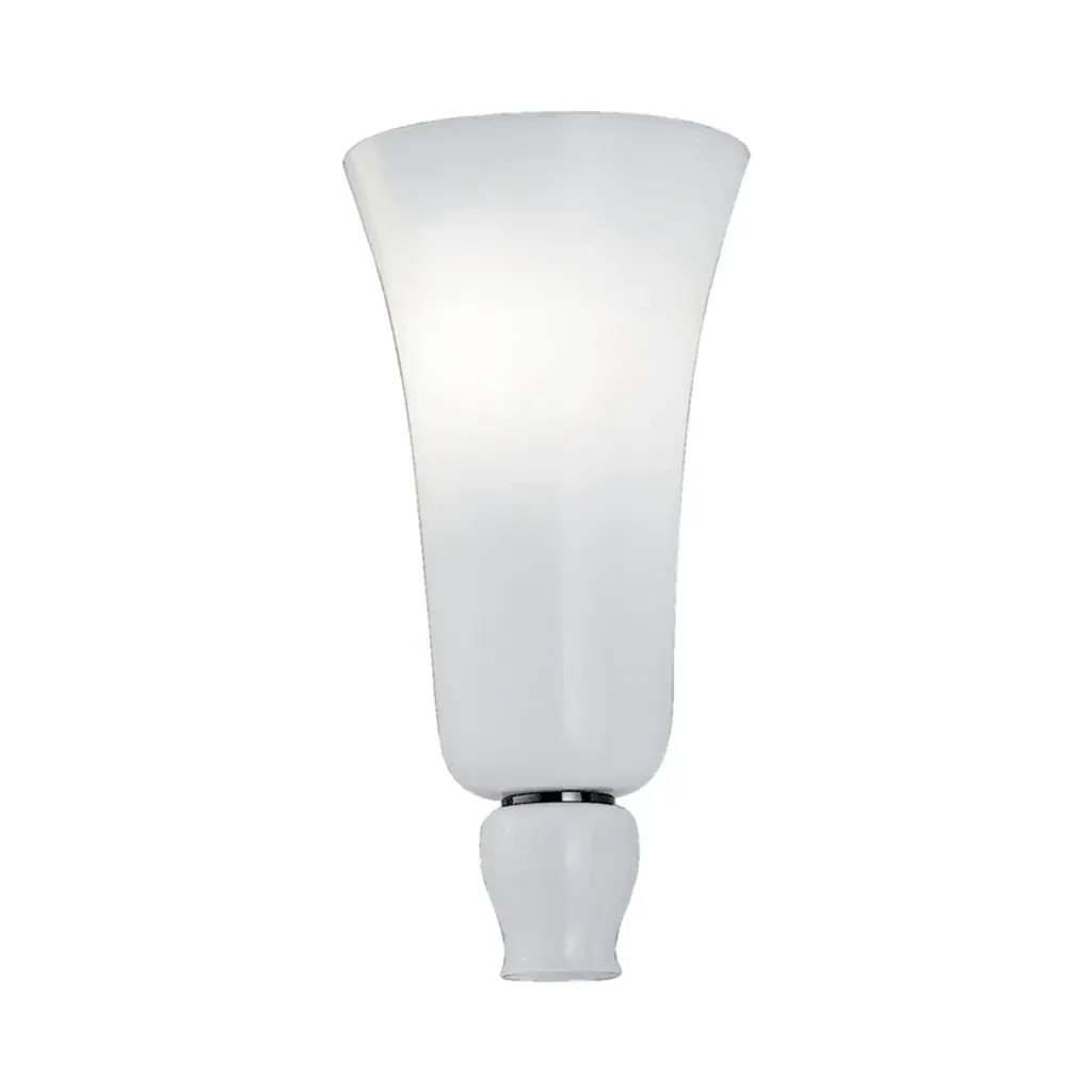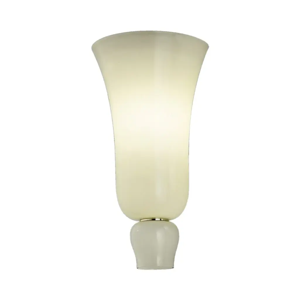 Anni Trenta is a wall lamp in hand-worked opal blown glass, obtained by overlapping the lattimo with other glasses. Art Nouveau, Charleston, the dawn of a new design era. The 1930s, celebrated by VENINI in 1997 and wistfully recalled with essential and innovative shapes like those that marked the decade. Anni Trenta is available as a pendant light, a wall light, a ceiling light, a table lamp and a floor lamp.Colors:Straw-YellowMilk - WhiteLight source:830.02 - 1 x max 8W LED E14830.03 - 1 x max 12W LED E27These stylish lamps with sinuous lines are clearly reminiscent of the 1930s.