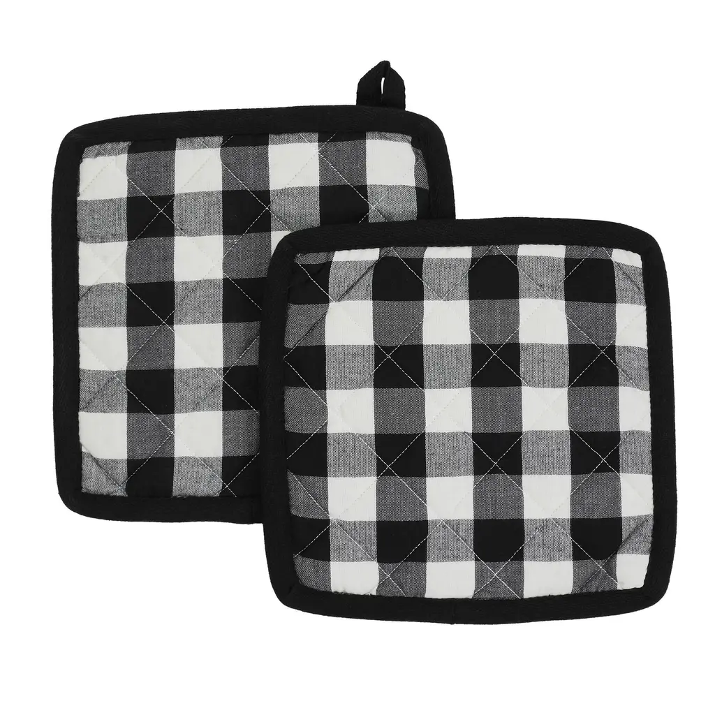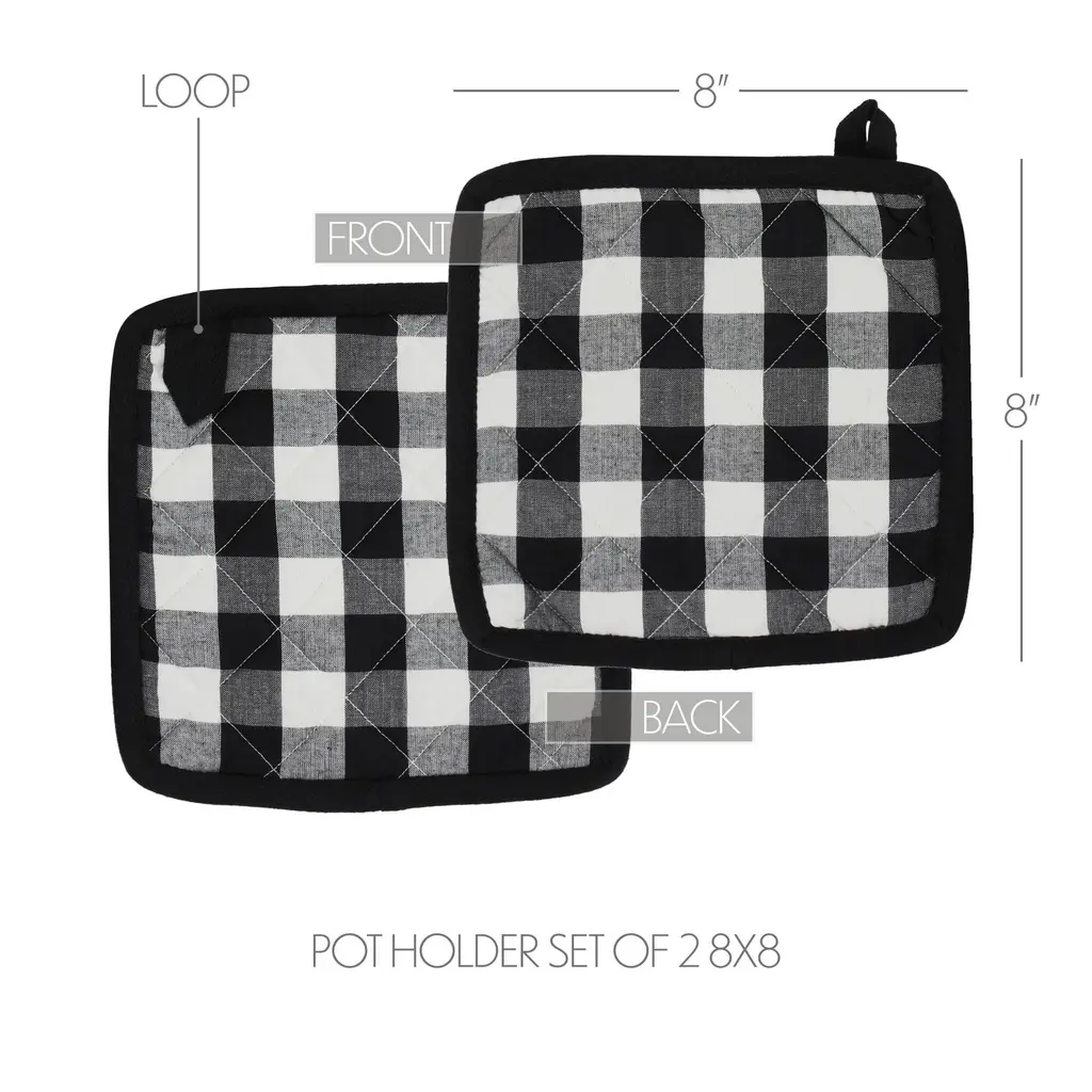 Annie Buffalo Check Black Pot Holder Set Of 2 8X8 - Black
