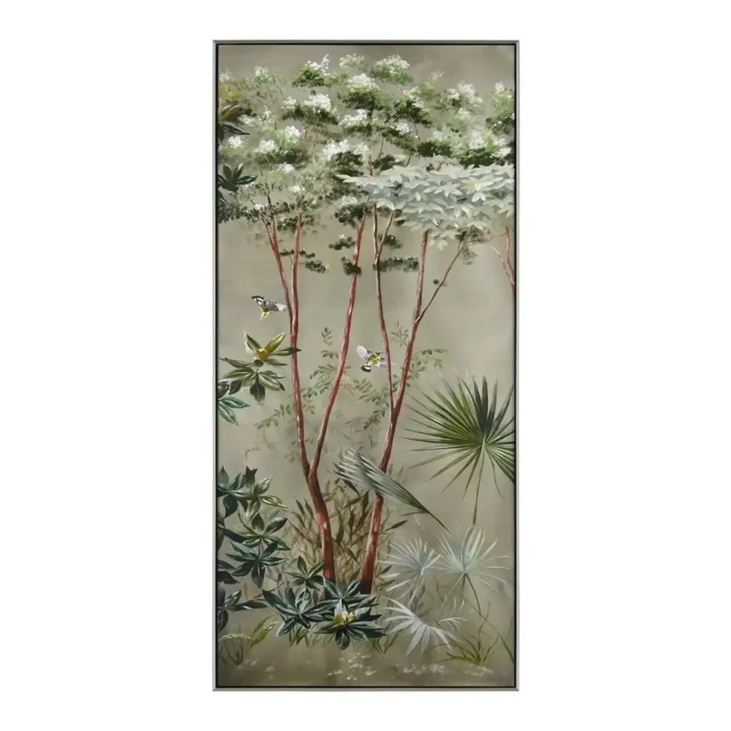 Montrose Vignette is a giclee of silk piece of art hand painted by Annie Moran. Finished in a matte finish and framed in a silver floater frame.