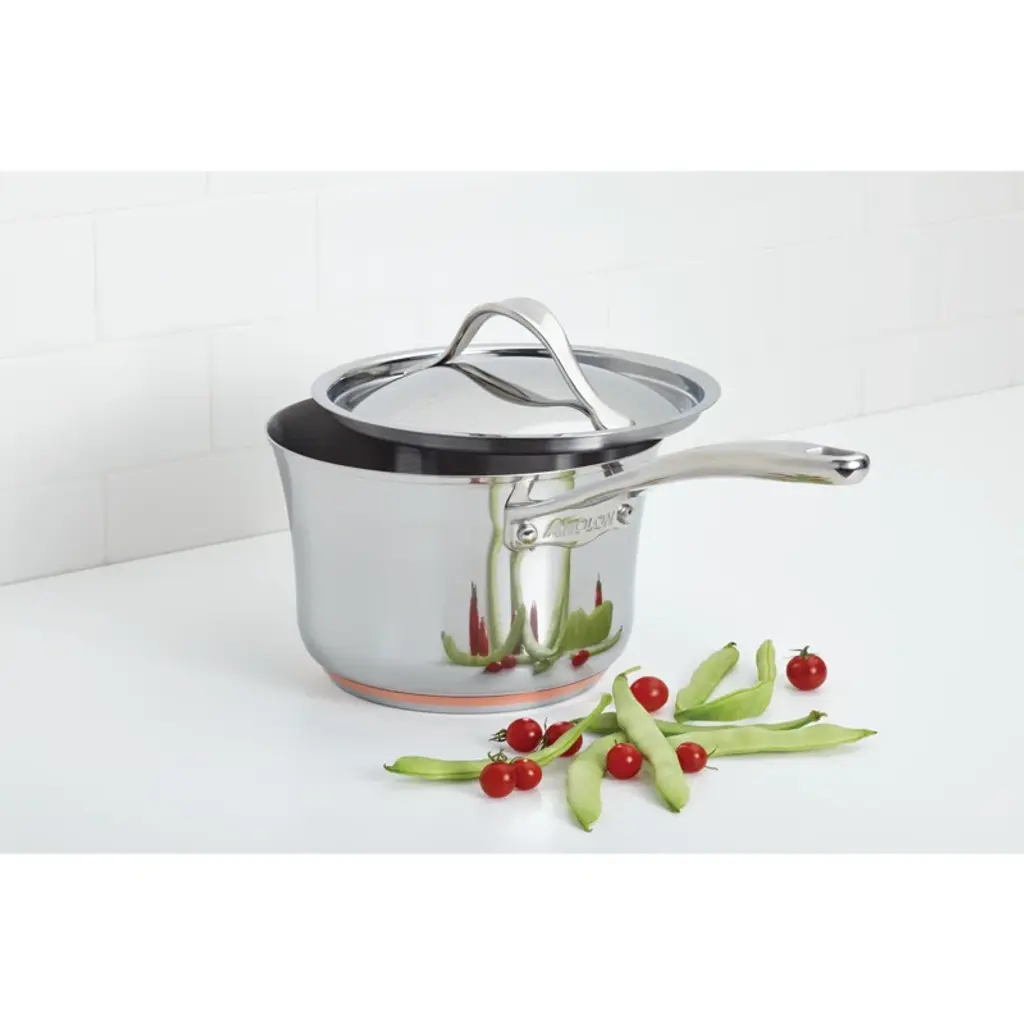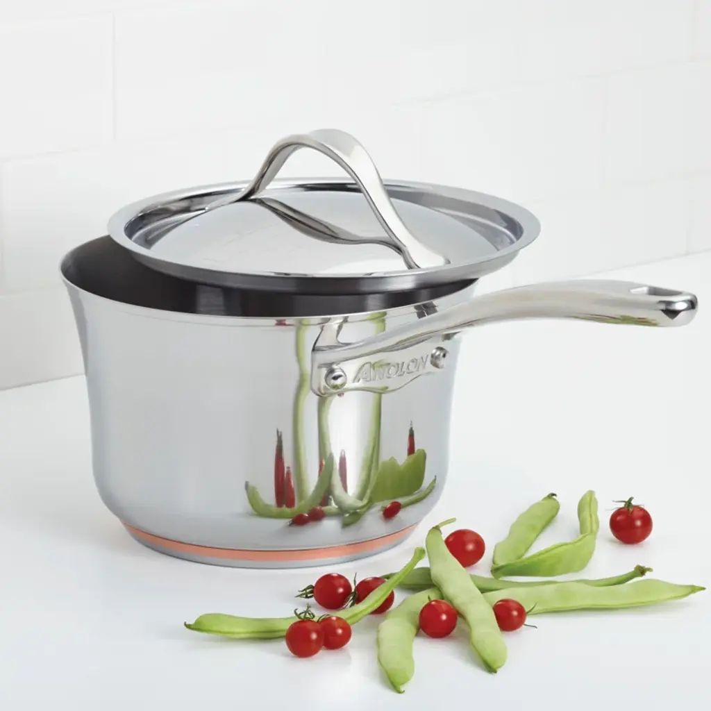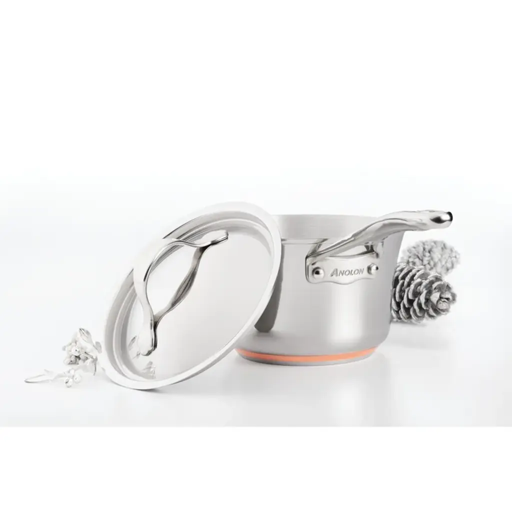 Anolon Nouvelle Copper Stainless Steel Sauce Pan With Lid, 3.5 Quart, Silver