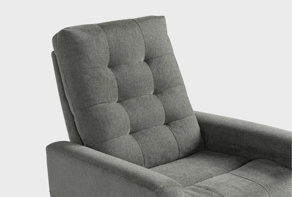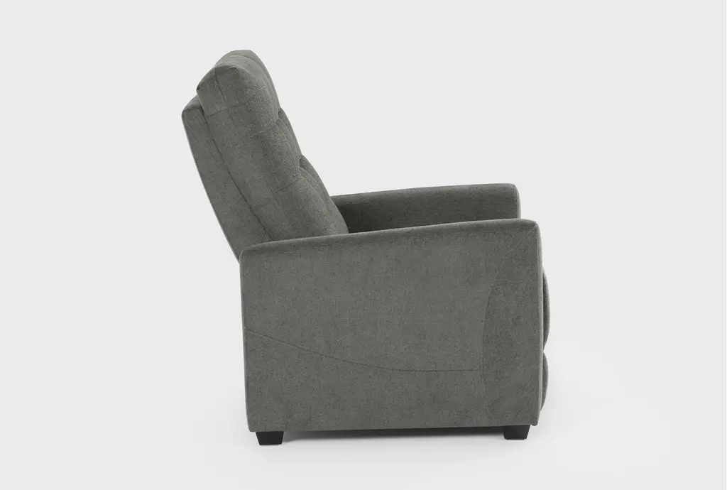 With multiple designs and colors to choose from, our Ansel reclining collection offers a variety of options for your lounging pleasure. The manual push back recliner boasts clean, modern lines with smooth track arms and grid tufting detail. A strong, sturdy frame is reinforced with wood, plywood and corner-blocking, while the seating promises exceptional support thanks to a foam core with innerspring coils and Dacron wrap. Soft and durable, the upholstery is tailored perfectly.