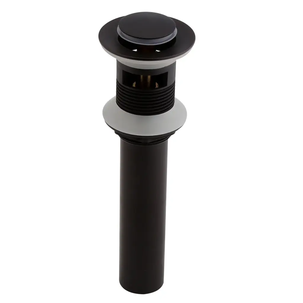 Refresh your sink with this antique black drain with overflow. Featuring a sleek round head with subtle detail, this drain is equipped with a push button which is easy to open or close the drain and cater your daily needs better. Solid brass construction in the handsome antique black finish not only resists corrosions and tarnishing but delivers a cool yet stylish taste to your space. Bring it home and coordinate it with your custom faucet for a slap-up look.