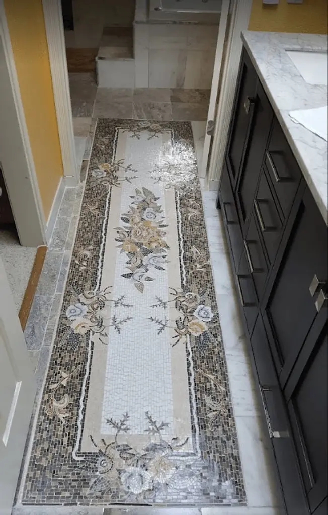Introducing the Antique Blossoms Medallion - Rhode Mosaic, a stunning piece of artistry that effortlessly blends elegance and nature's beauty. This exquisite mosaic artwork showcases a captivating floral design, highlighted by a central bouquet of flowers, elegantly encircled by six smaller bouquets that radiate charm and sophistication. Handcrafted from premium marble stones, each medallion is a unique masterpiece, reflecting the skilled artistry and attention to detail synonymous with traditional mosaic techniques. The rich textures and vibrant colors of the marble create a visual feast, allowing the beauty of nature to shine through in every piece. Whether displayed in a cozy indoor space or gracing an outdoor patio, the Antique Blossoms Medallion adds a touch of grace and character to any environment.Ideal for enhancing your home decor or outdoor settings, this mosaic is not just a decorative element; it’s a conversation starter, a symbol of artistry and craftsmanship that stands the test of time. The durable materials used in its construction ensure that it can withstand the elements, making it suitable for both interior and exterior applications without compromising its beauty and integrity.Transform your space with the Antique Blossoms Medallion - Rhode Mosaic, where elegance meets artistry in a timeless design that celebrates the beauty of floral motifs. Embrace the fusion of nature and craftsmanship by adding this stunning piece to your collection today.
