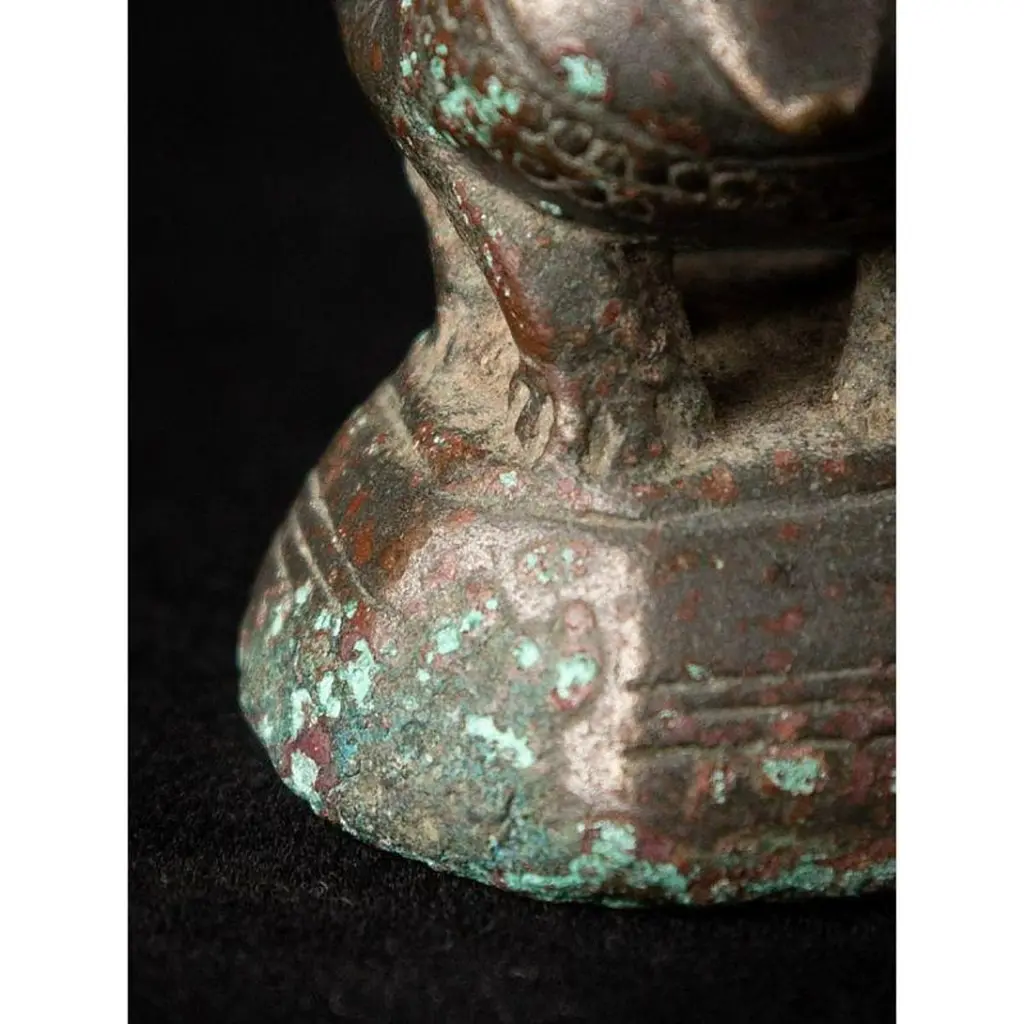 Material: bronze4,8 cm high 3,4 cm wide and 4 cm deepWeight: 0.159 kgsOriginating from Burma18th century.