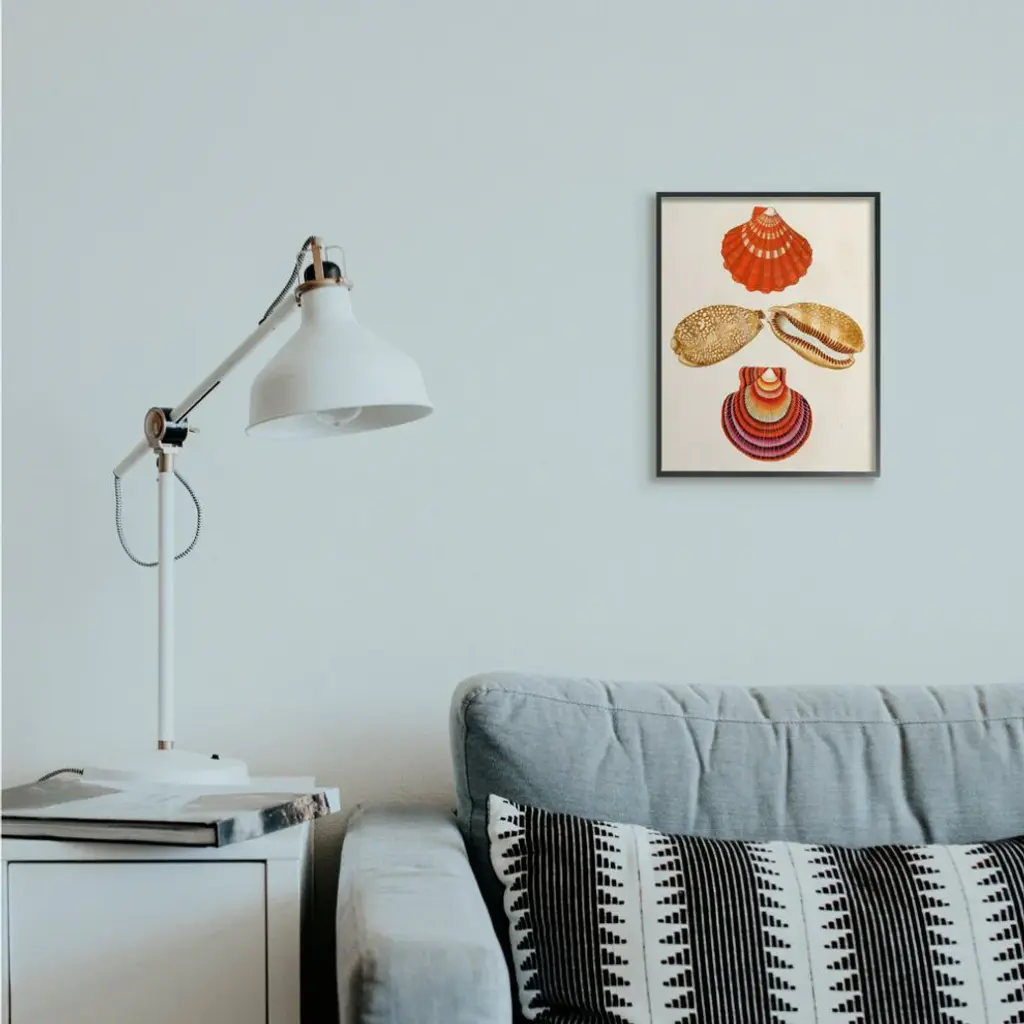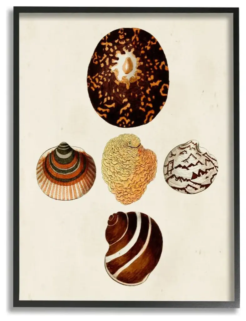 Antique Brown Speckled Red Striped Sea Shell Art,1pc, Each 11 X 14