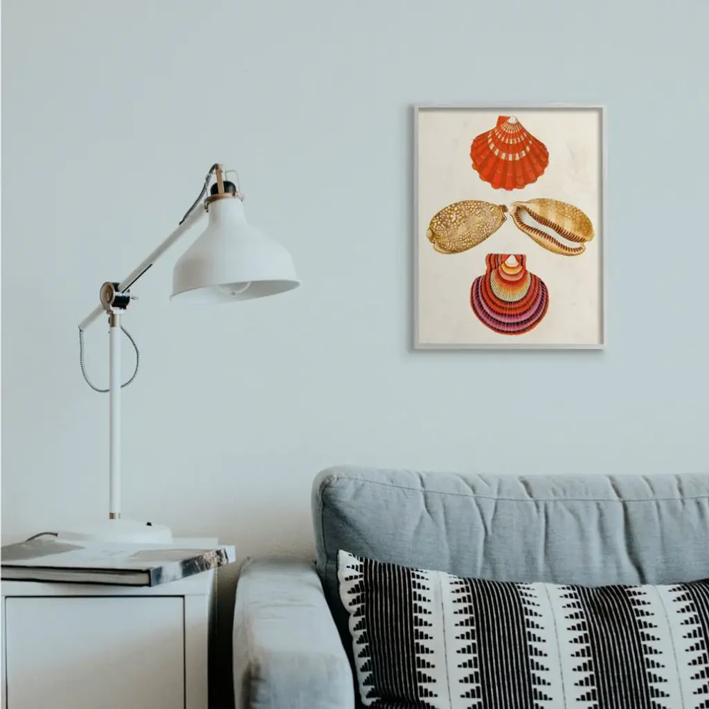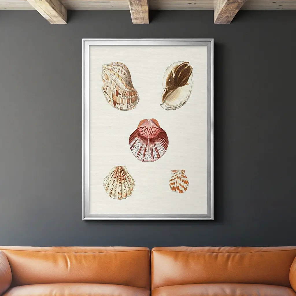 Antique Brown Speckled Red Striped Sea Shell Art,1pc, Each 16 X 20