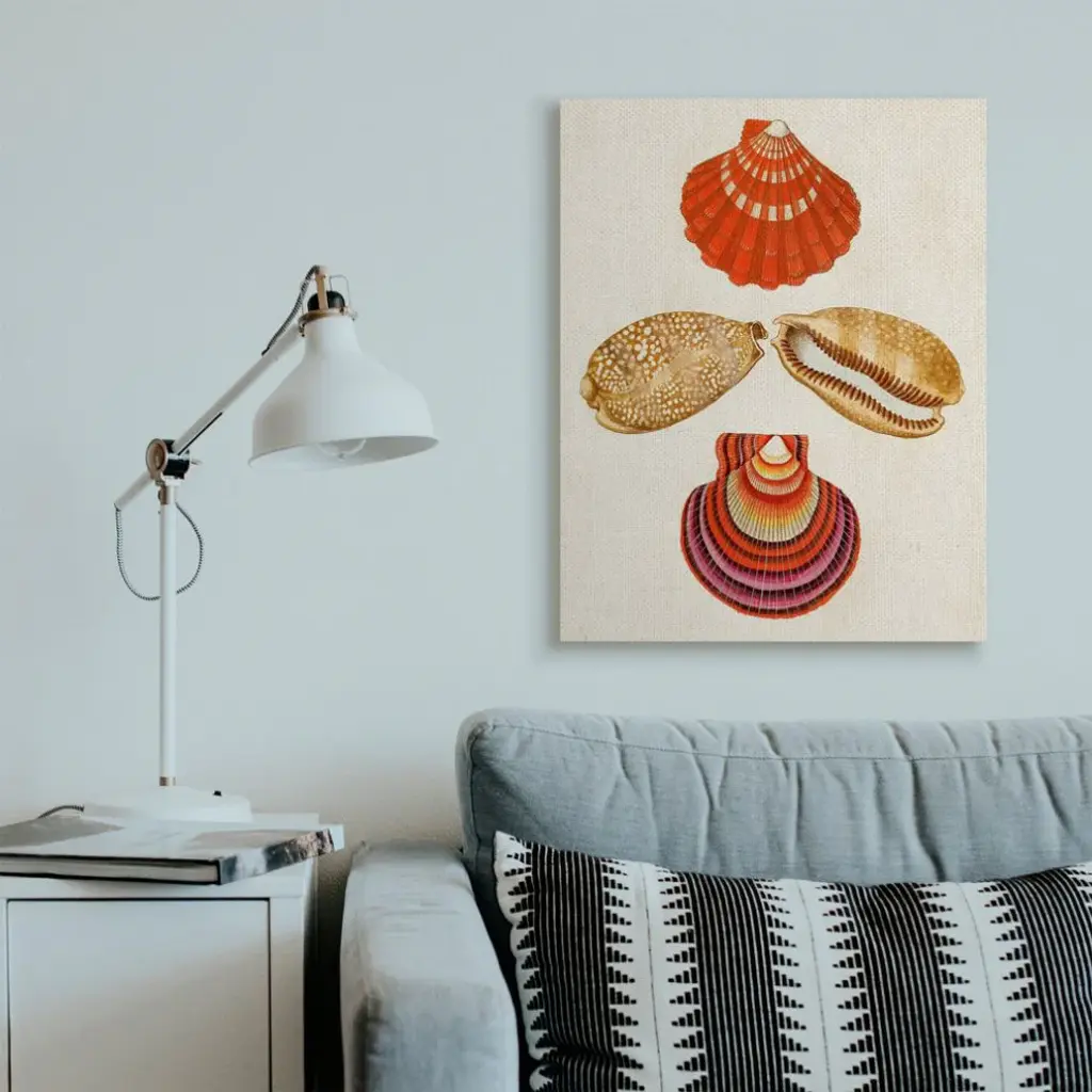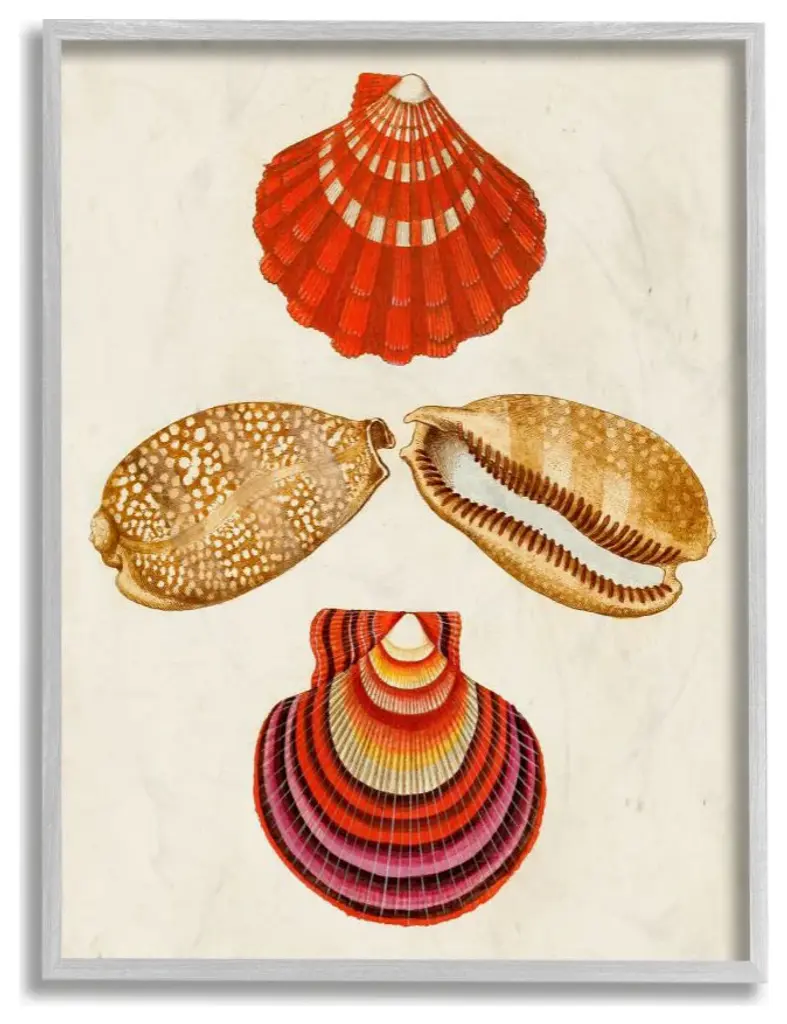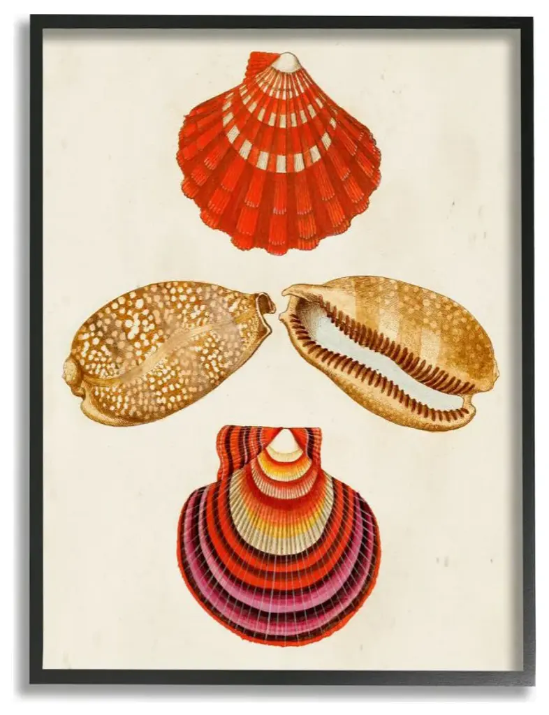 Antique Brown Speckled Red Striped Sea Shell Art,1pc, Each 30 X 40