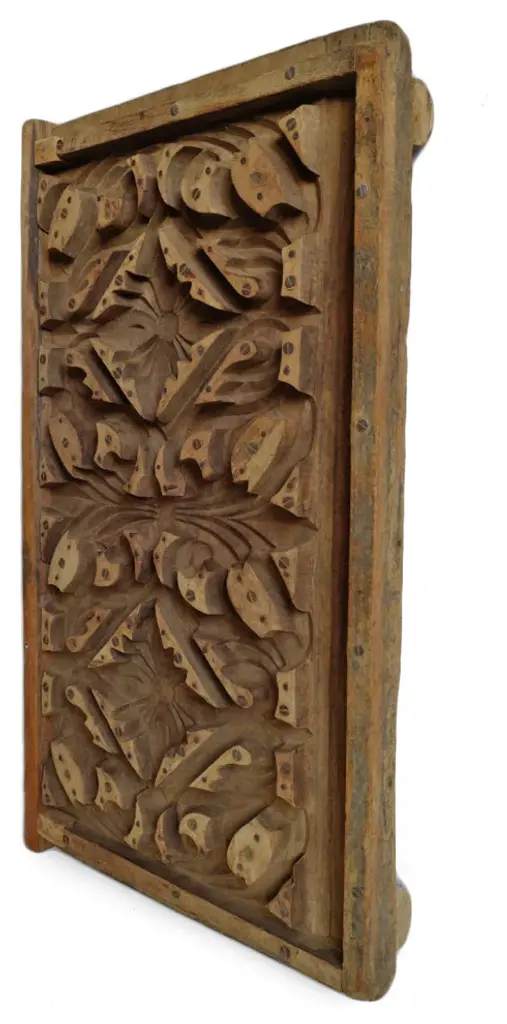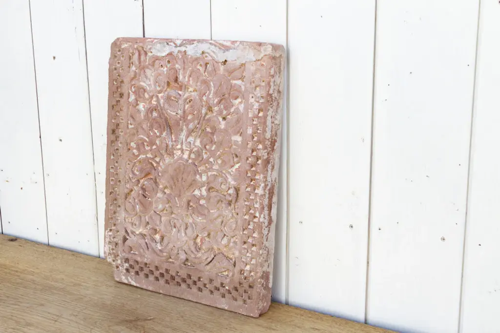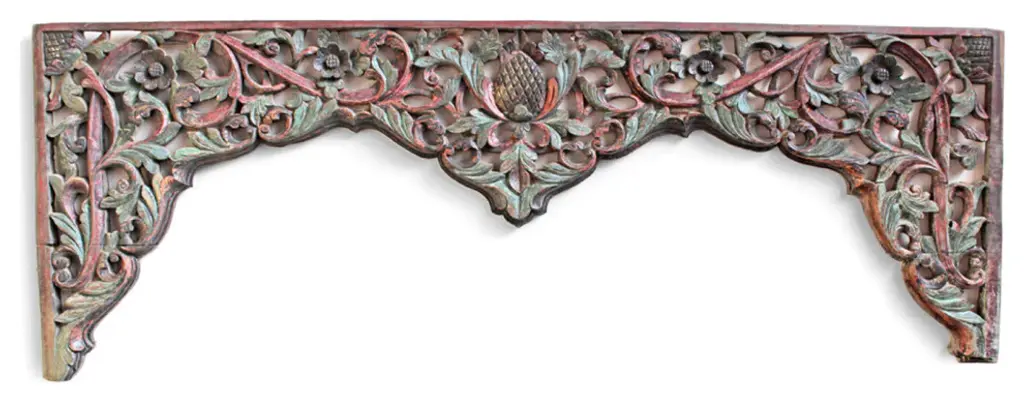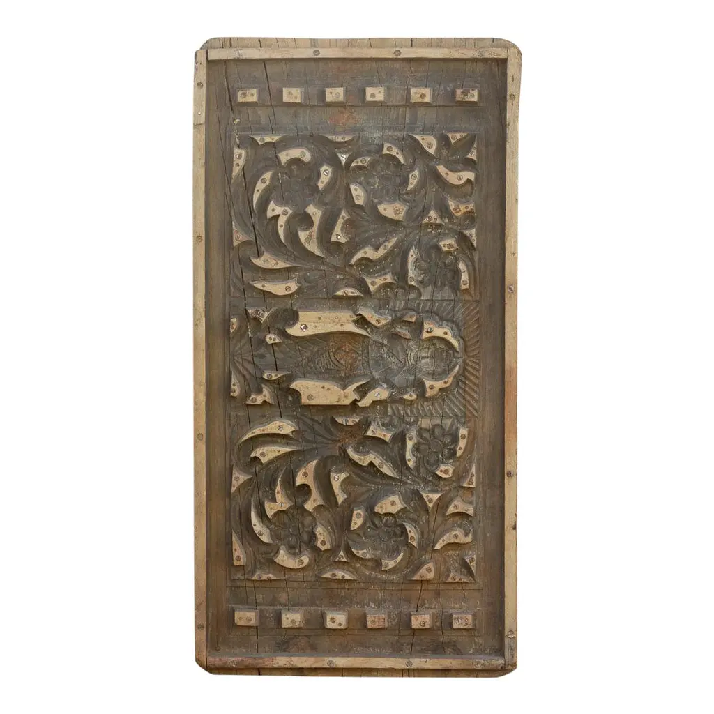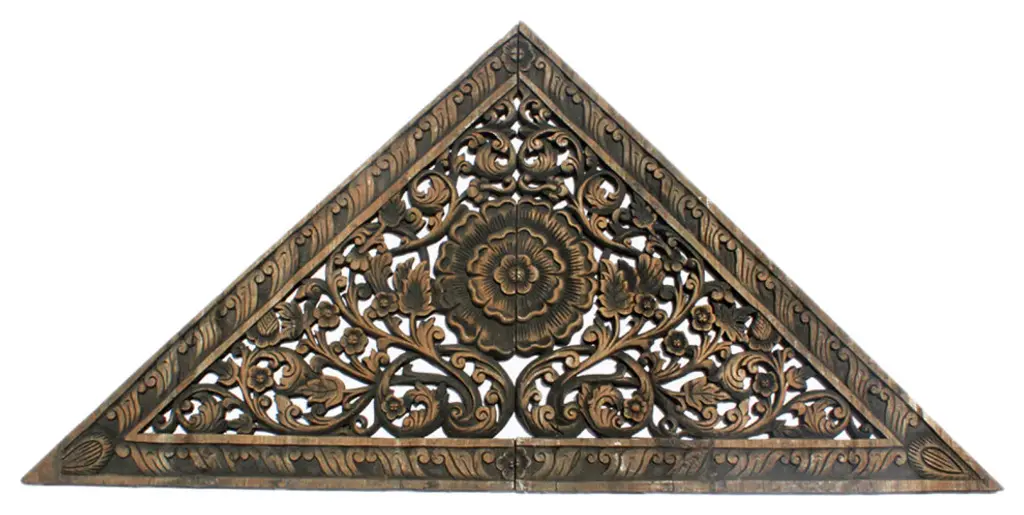 Hand carved teak panels are traditionally made by Burmese artisans with intricate floral designs and antiqued two tone burned finish. These beautiful panels are used for various decorative purposes displayed in groupings, used as ceiling plates, or as an interesting exterior or interior design element. Larger sizes may be broken down into separate panels. Each may vary slightly in exact finish, handmade differences, and natural imperfections. This item is non-returnable - all sales are final.