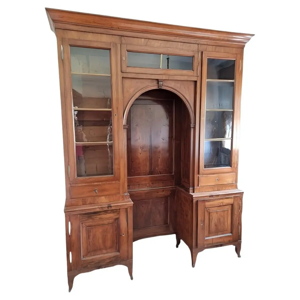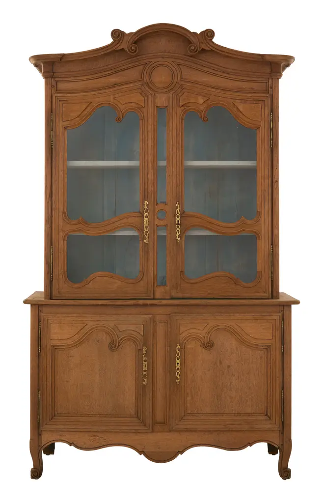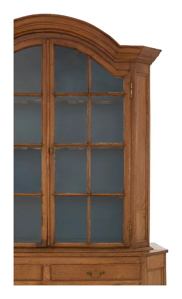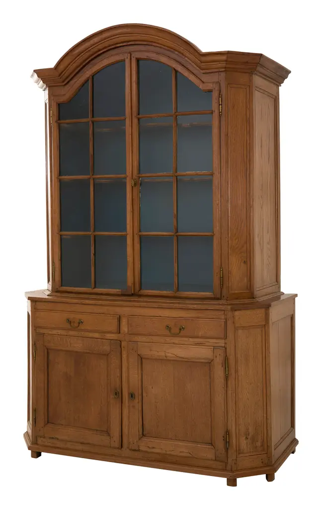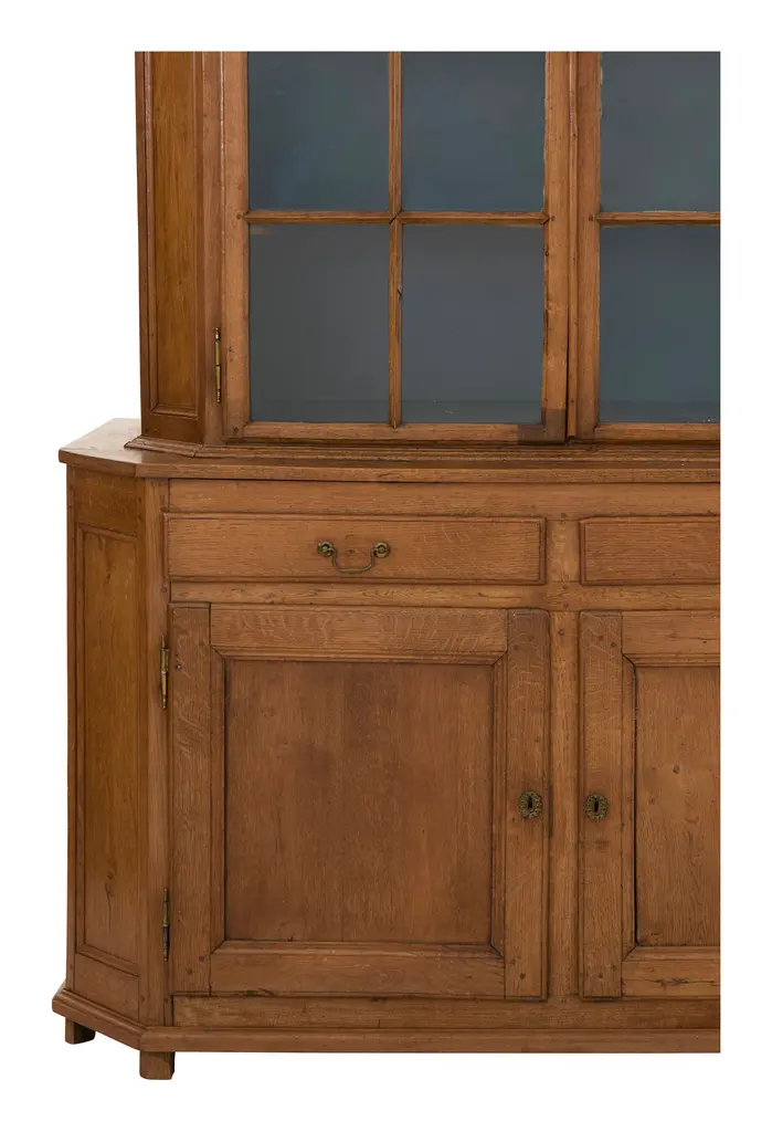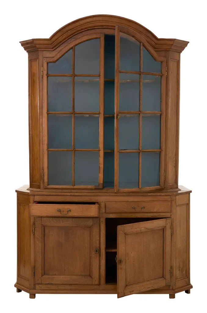•patinaed wood finish •blue painted interior with gilt detail as found •antique brass hardware •late 19th century •belgium Dimensions•63"W x 27"D x 97"H