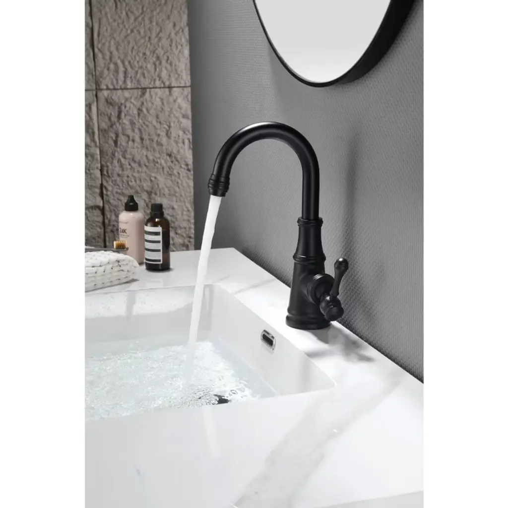 This Contemporary Minimalist Bathroom Faucet stands out with its distinctive matte black finish and sleek minimalist design, perfectly aligning with the aesthetic demands of modern bathrooms. The single-hole water outlet ensures a consistent flow while the efficient water-saving technology reduces unnecessary wat usage. The twist handle allows for easy temperature adjustment, providing a satisfying user experience. Additionally, the faucet�s dual-control feature for hot and cold water meets the diverse preferences of family members. Whether for daily grooming or thorough cleaning, this faucet is up to the task, making it an ideal choice for a modern bathroom setup