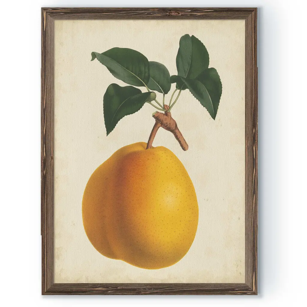 Antique Pear Botanical II– Framed Canvas Featuring a premium giclee canvas print in a solid wood roughhewn frame. Each piece is printed on 100% cotton canvas and designed to last for generations. Available in 2 sizes 16x22 or 22x30