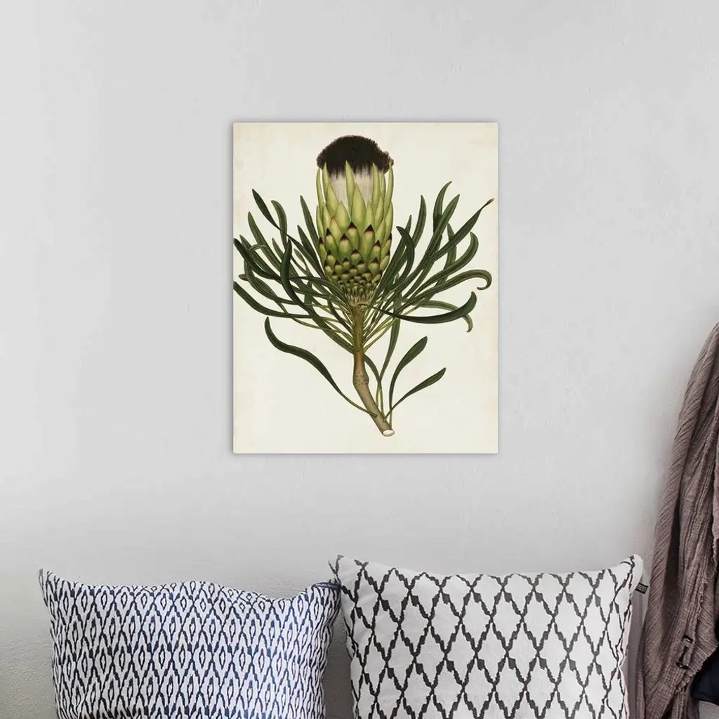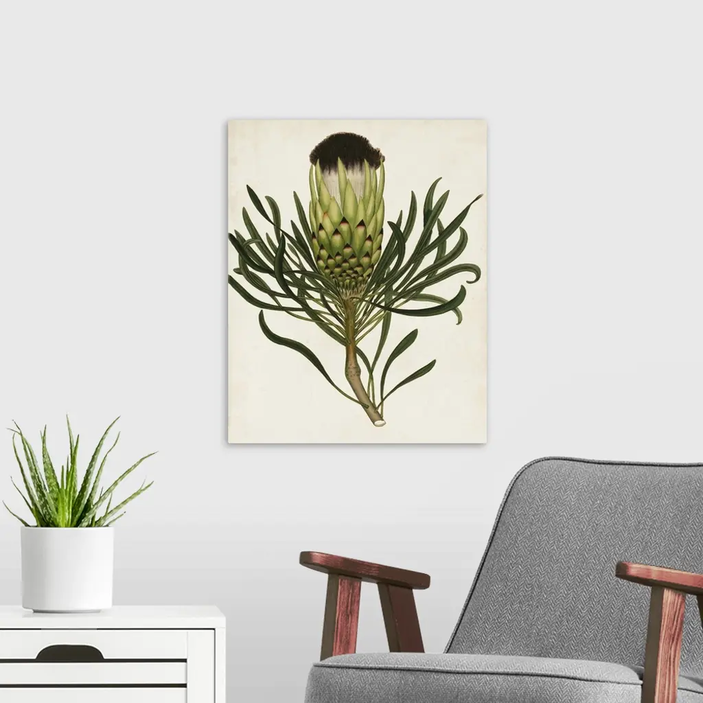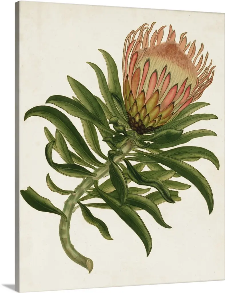 A decorative vintage illustration of a sugarbushes (or Fynbos).
