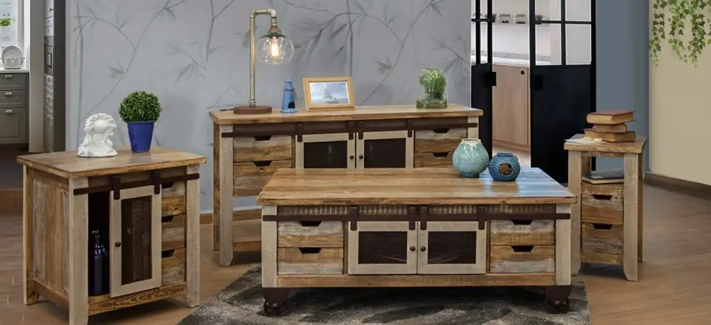 Reclaimed rustic meets updated farmhouse in the Antique sofa table. This beautifully designed table features a reclaimed lumber look with sliding farm doors and a slight hint of modern. Perfect for today's busy lifestyles this table will give you years of stylish and durable use.
