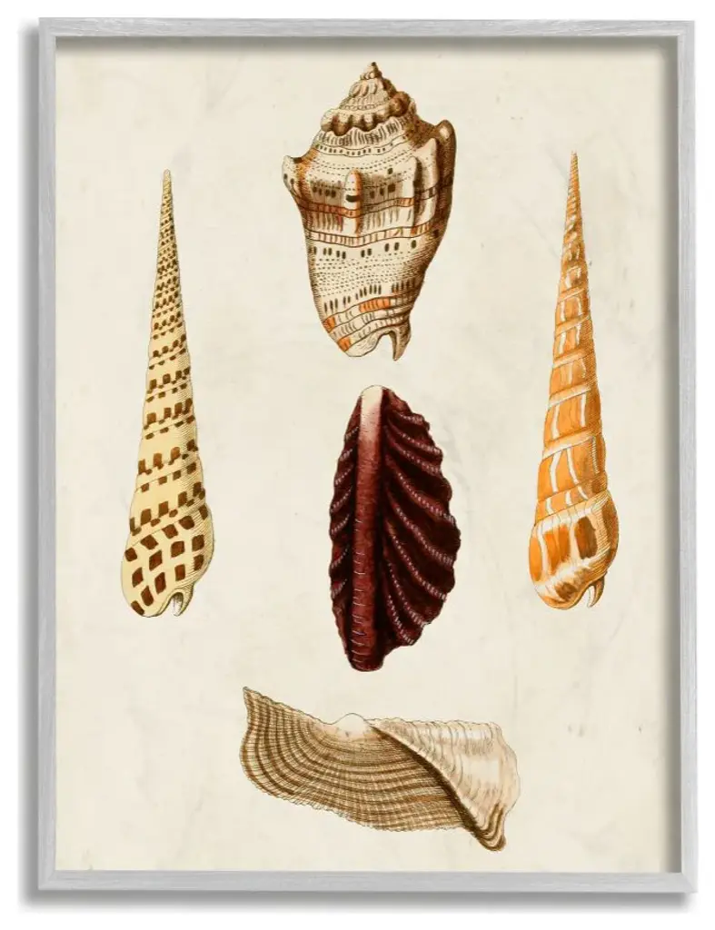 Antique Warm Brown Patterned Round Sea Shell Vintage,1pc, Each 16 X 20