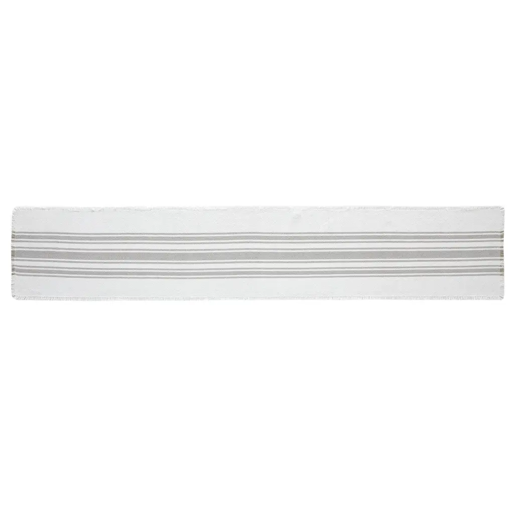 Create a joyful table both inside and out for friends and family to gather round with modern color and a classic design. The Antique White Stripe Table Runner includes one table cover in several sizes and color options. The frayed edging and the vintage grain sack style design are given a modern twist and recycle PET material for a water-resistant fabric that can be used on traditional tabletops, or for sprucing up a patio table with farmhouse charm. Complete your tabletop decor with other pieces from the Antique White Stripe Collection by VHC for modern farmhouse style.