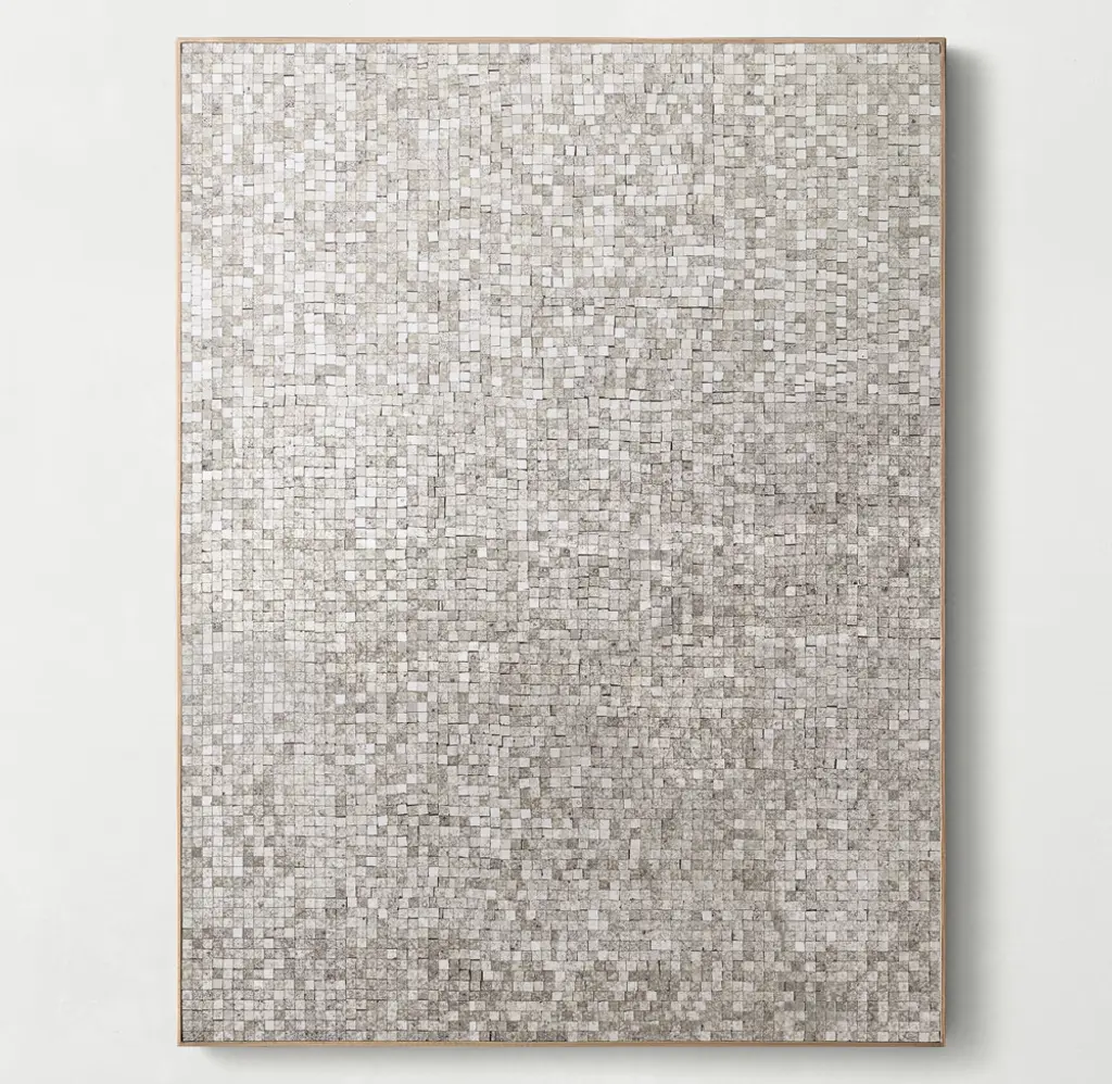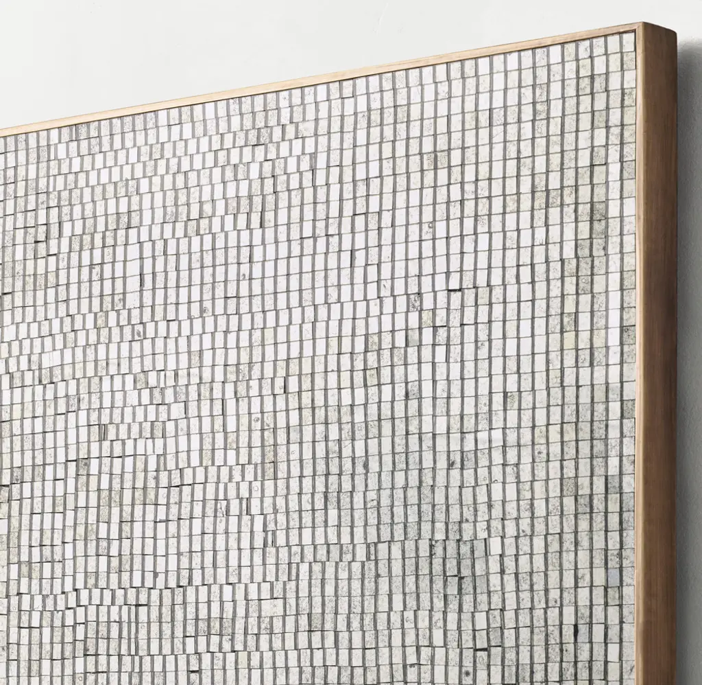 The mosaic art form dates back to the 3rd millennium B.C., but our take on this ancient tradition skews decidedly more glamorous. Framed in metal, the shimmering panel is hand set with tiny glass tiles whose antiqued mirrored finish catches and reflects every last ray of light.
