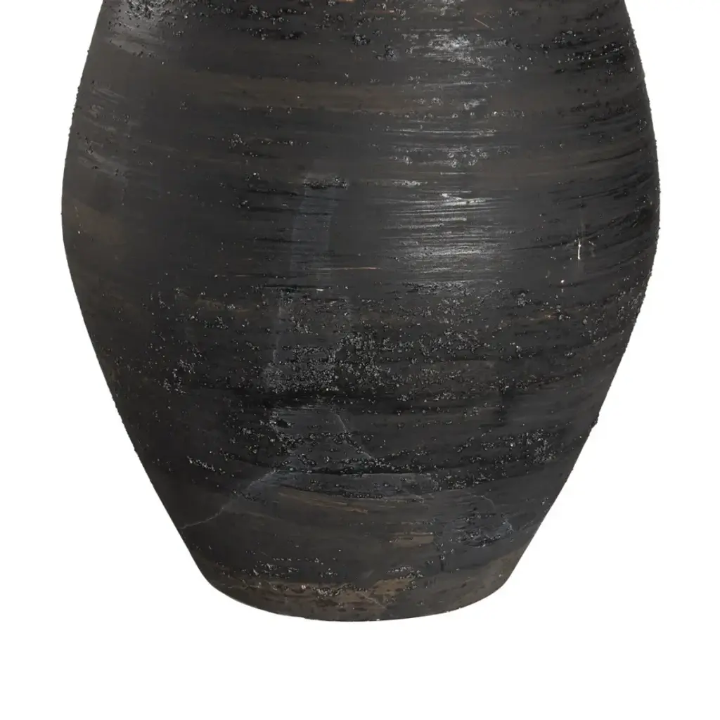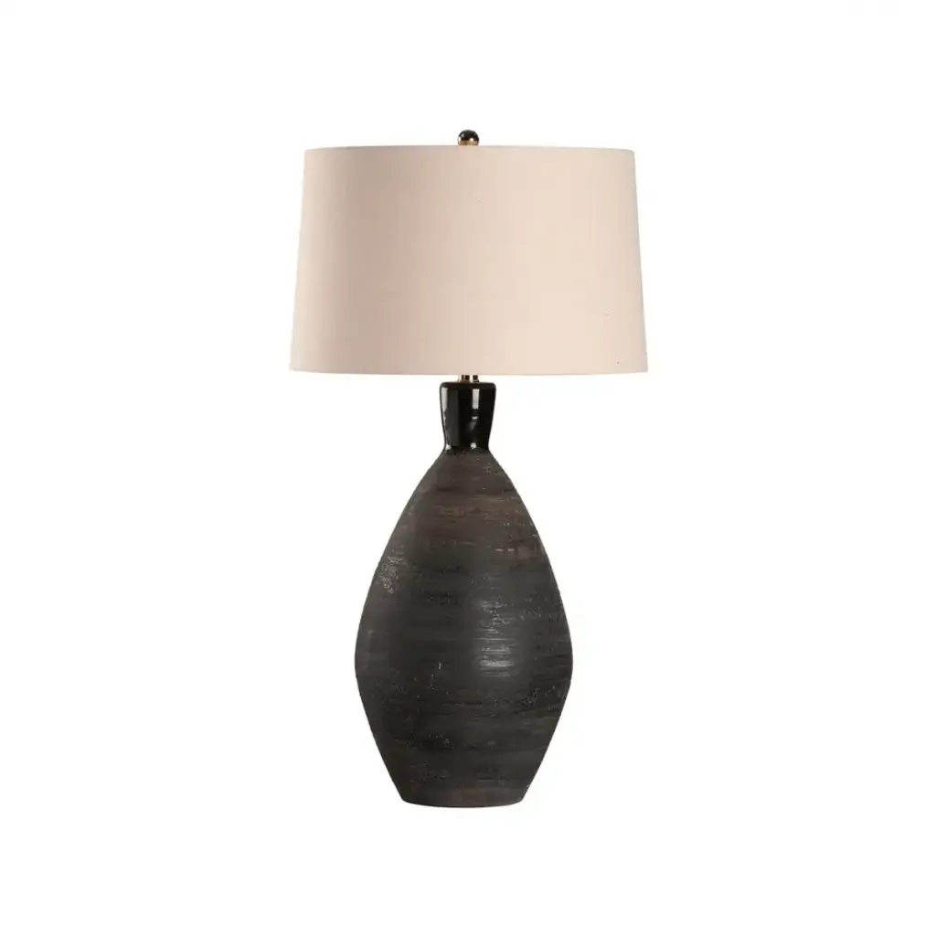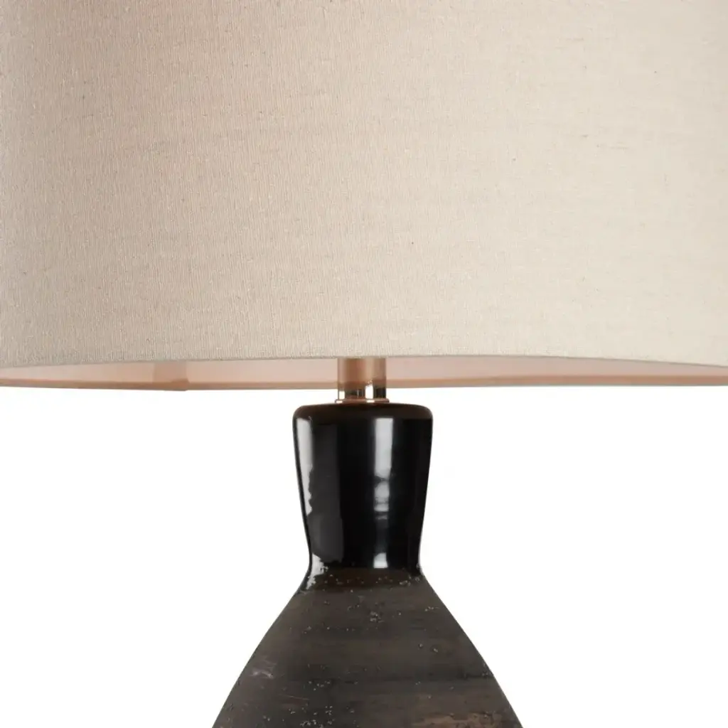 Sculptural and striking, the Annibale Lamp is handcrafted in Italy with a bold silhouette and dramatic finish. A lustrous metallic glaze at the neck flows into a deep, dark Etruscan base with subtle drip detailing, creating rich visual contrast and depth.
