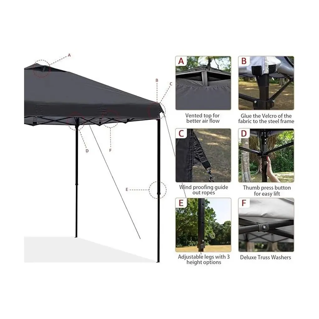 Anybear 10x10ft Black Pop Up Canopy Tent With Adjustable Legs