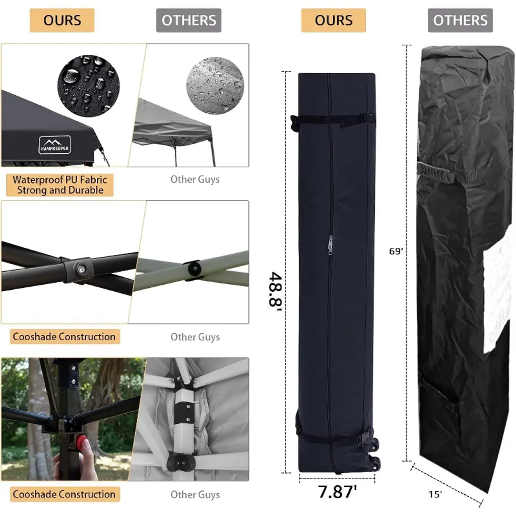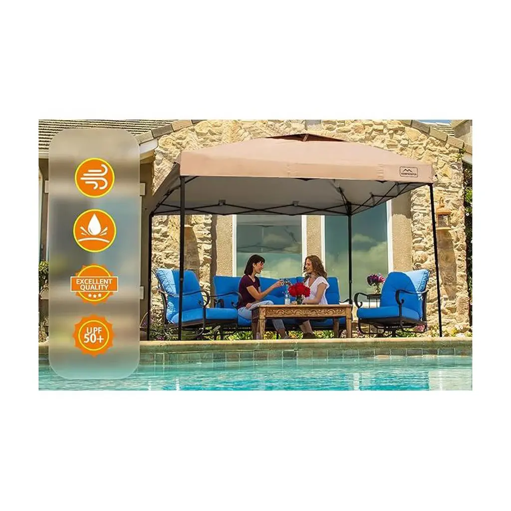 Premium Quality Material: The gazebo is crafted from 150 Denier Silver Coated Oxford Fabric that is not only UV resistant but also features air vents on the roof for maximum ventilation and cooling. All stitching lines are seam-sealed to create a waterproof canopy that's stronger than most polyester fabrics