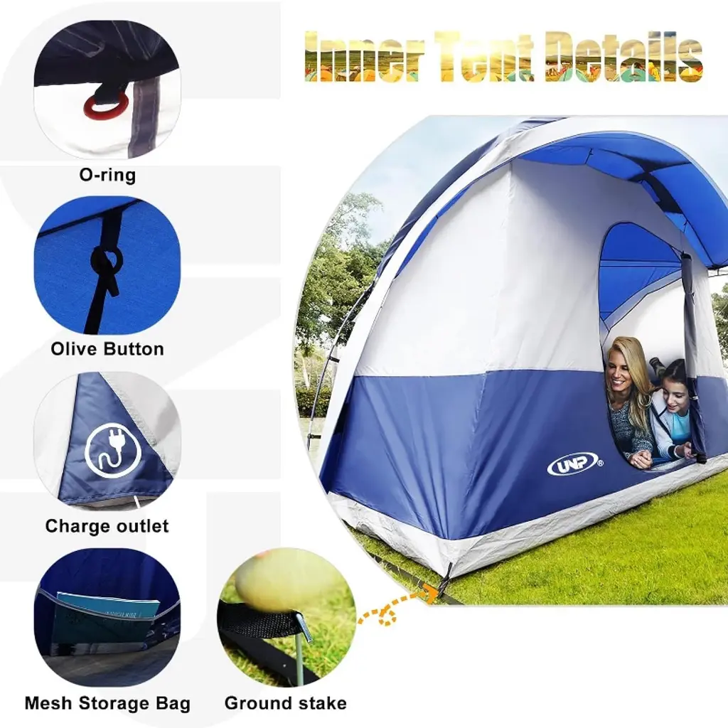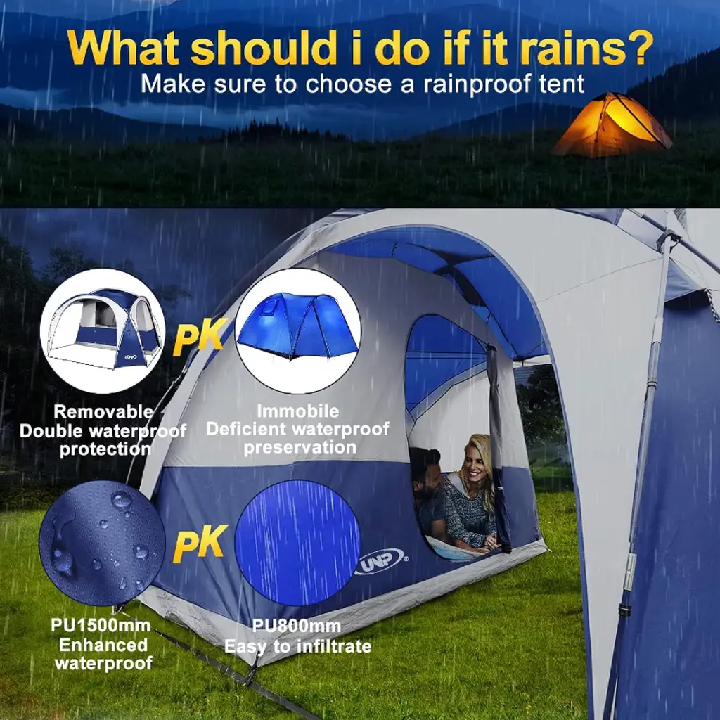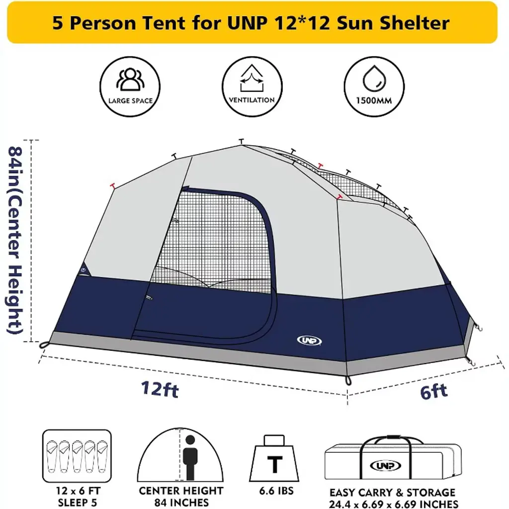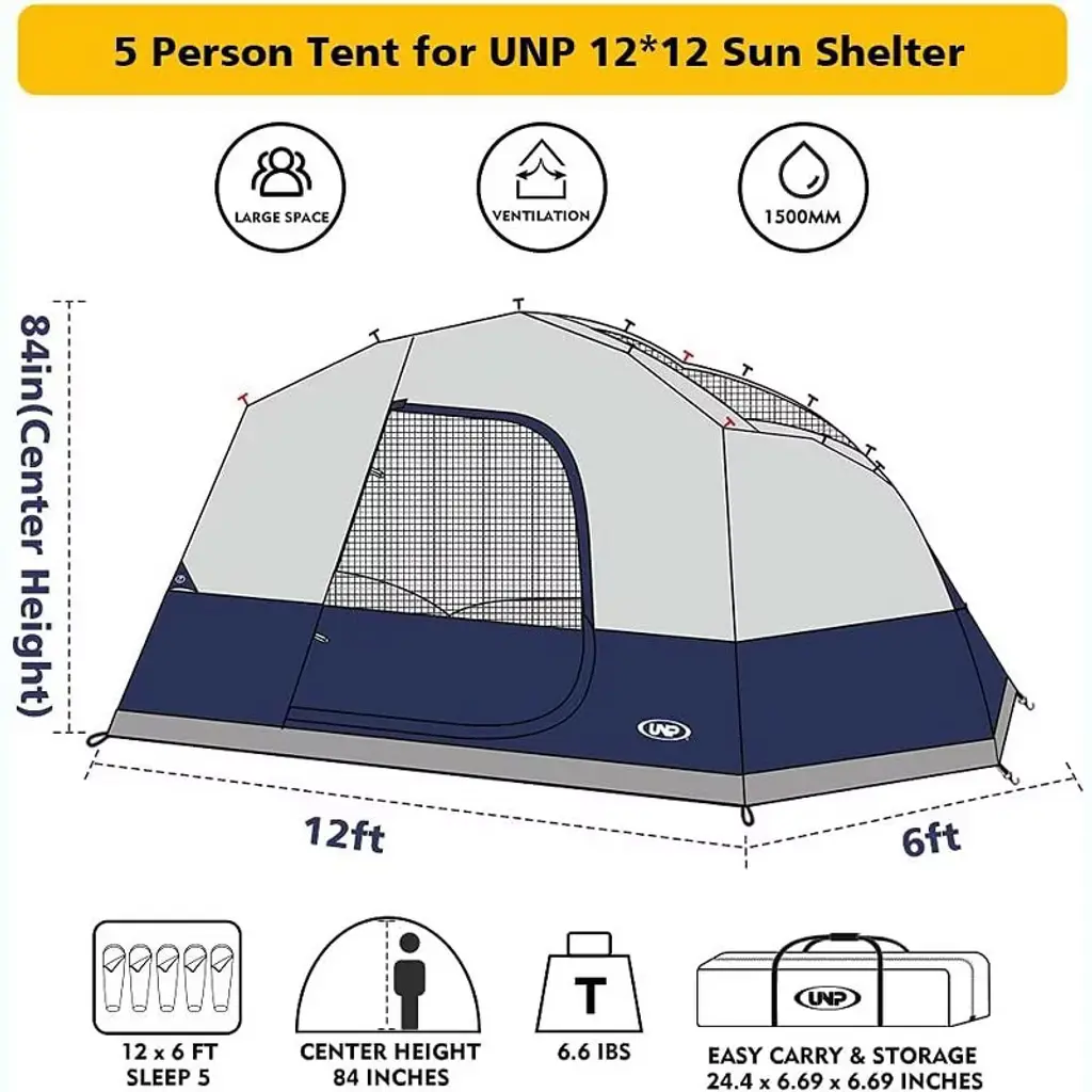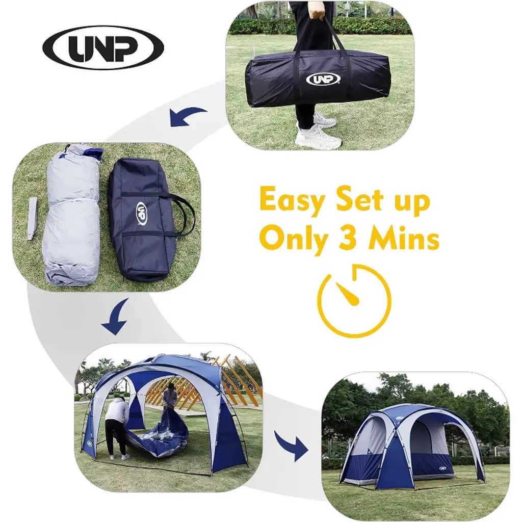 As tent accessories while treated as camping tent, Inner Dome and Semi tent offer a campsite covered living space. It's great to build an private space to walk into tent without getting wet in rain when having the shelter positioned over the door of your tent. It also gives you the option to bring tables and chairs inside the shelter as a standalone communal area. It's a sturdy camping dome shelter, ideal for Outdoor Sports Events, Picnics and gatherings with your families and friends.