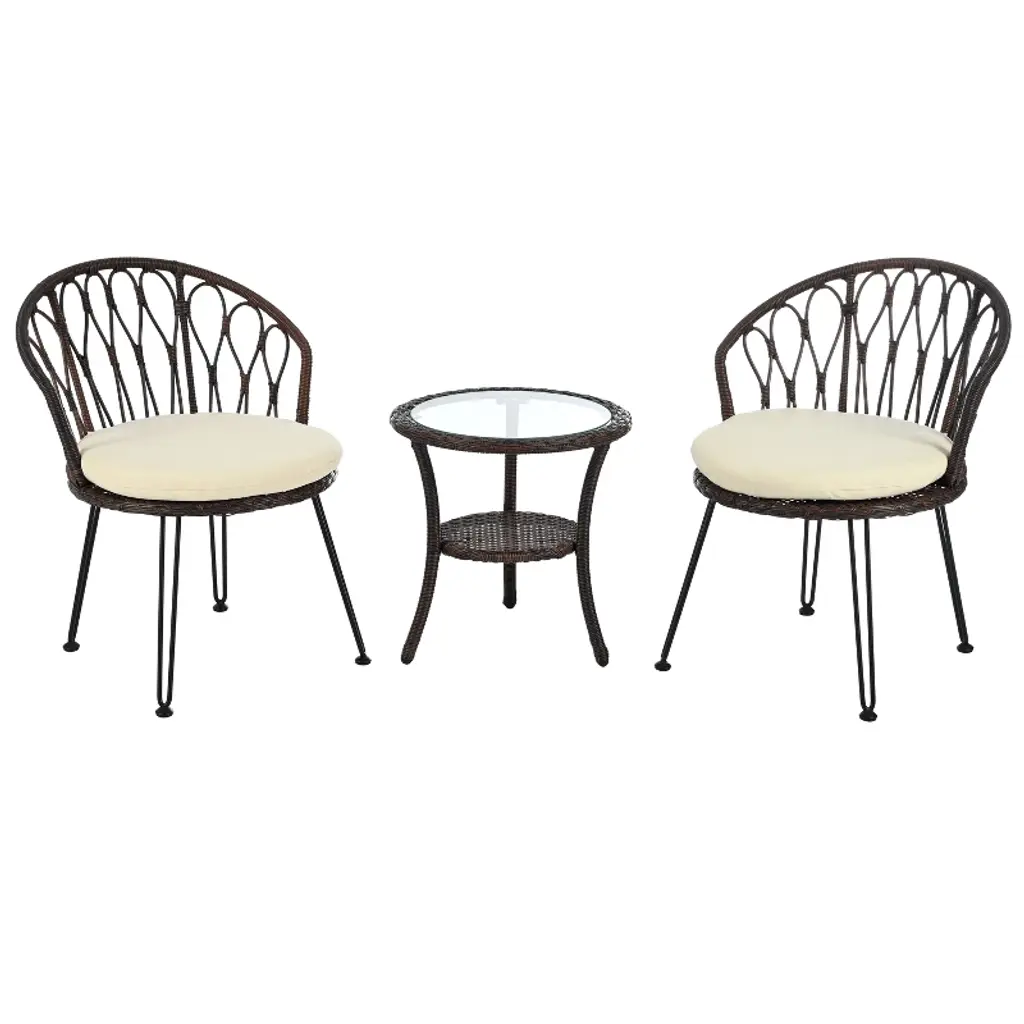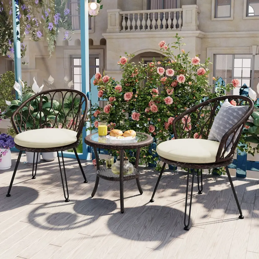 Anybear 2Pc Rattan Chairs With Glass Round Table Leisure Set For Patio Balcony Courtyard
