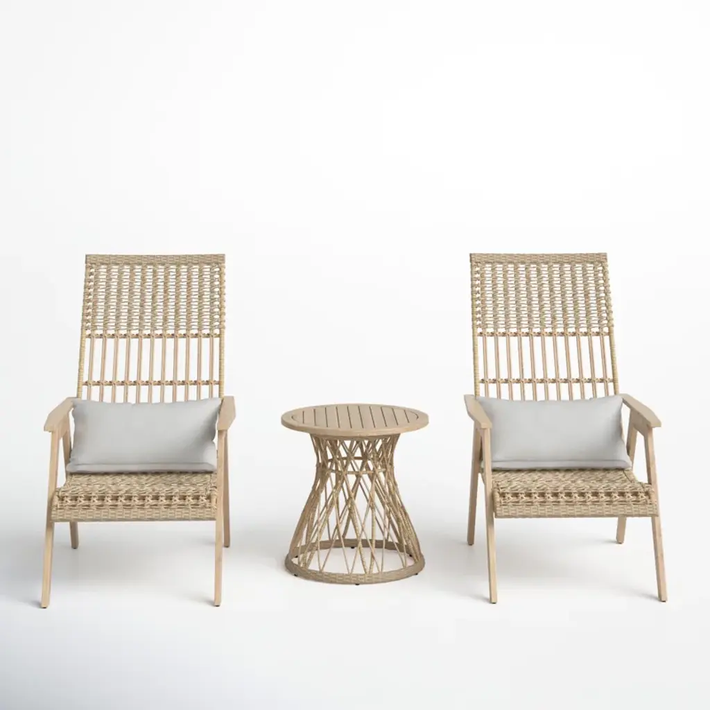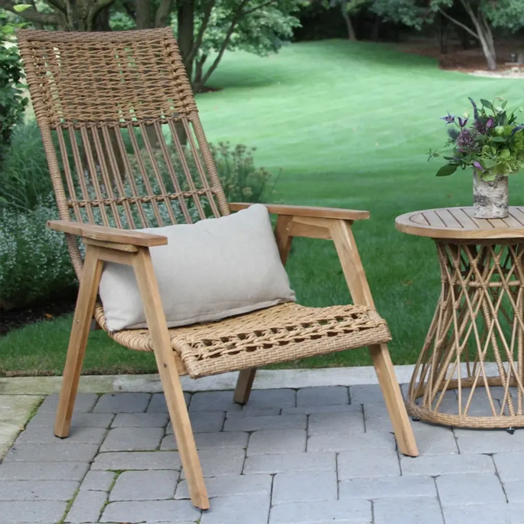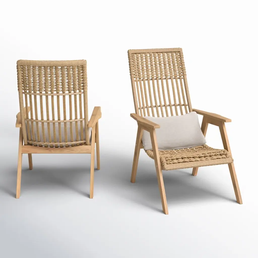 Our 2-piece patio lounge chair set makes it super easy to relax on sunny Saturdays. Made from solid teakwood, the duo shows off a rustic finish that weathers to a classic patina. The resin wicker accents also stand up to the elements nicely. Bonus: This set comes with two throw pillows with machine-washable covers for fuss-free maintenance.