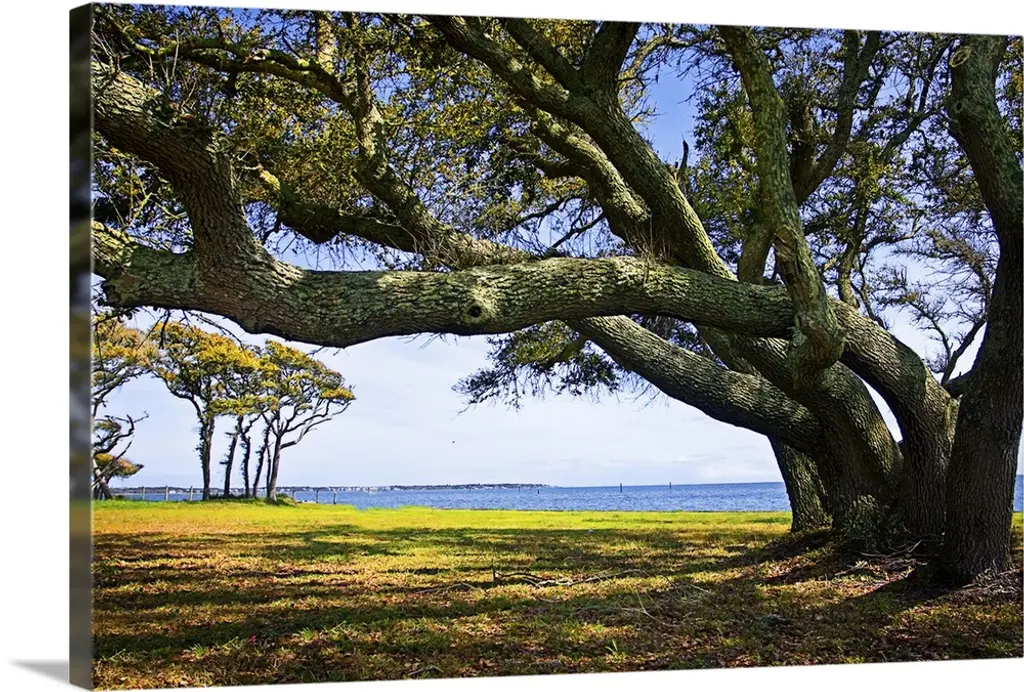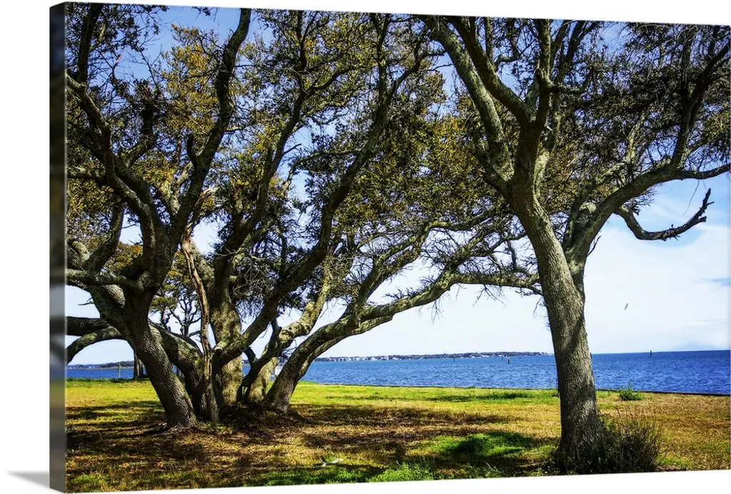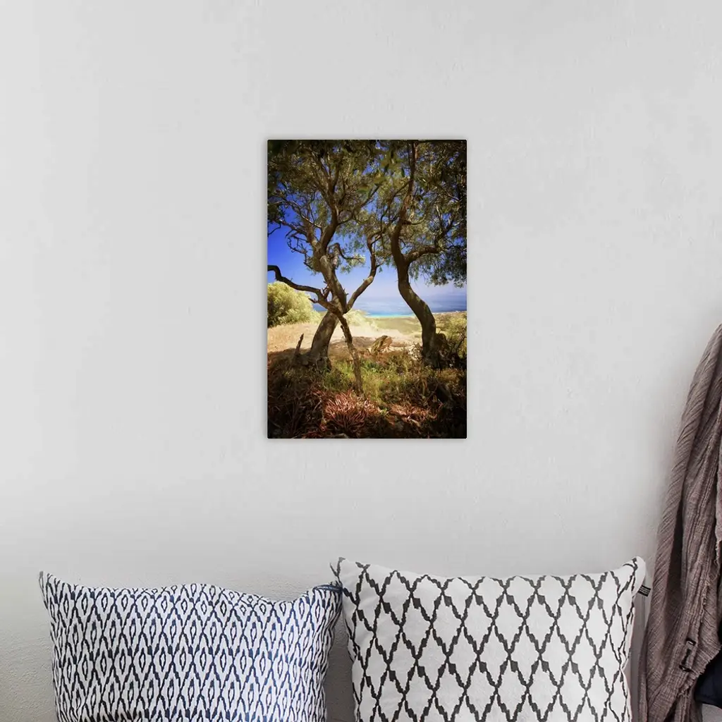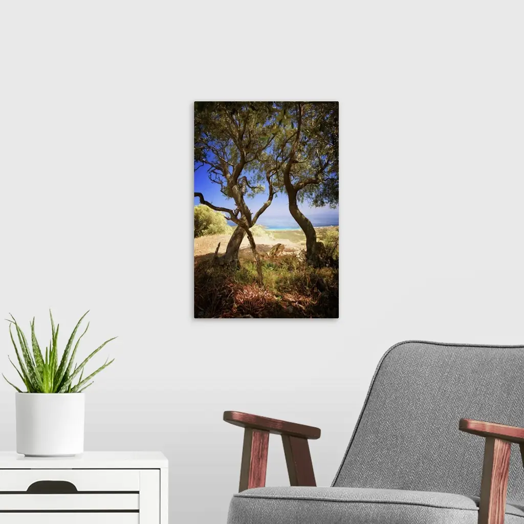A photograph of a windy trees in a countryside scene.