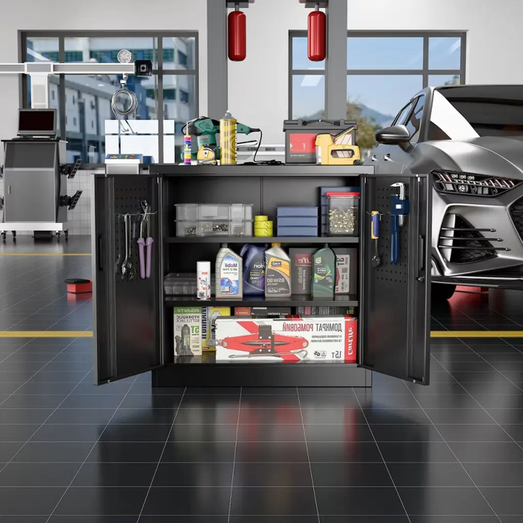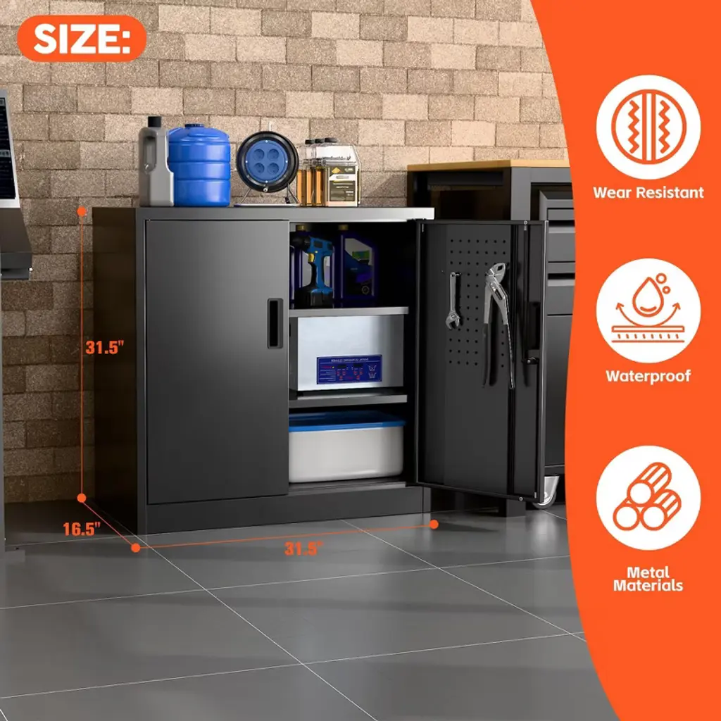 Aobabo 31.5" H Small Garage Storage Cabinet With Pegboard,lockable And 2 Adjustable Shelves For Garage, Office, School, Assembly Required, Black