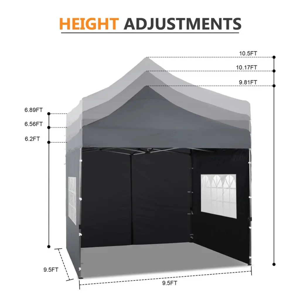Aoodor 10' × 10' Commercial Instant Pop Up Canopy Tent, 3 Adjustable Heights, Fully Waterproof Portable Gazebo Shelter, With Wheeled Bag-gray