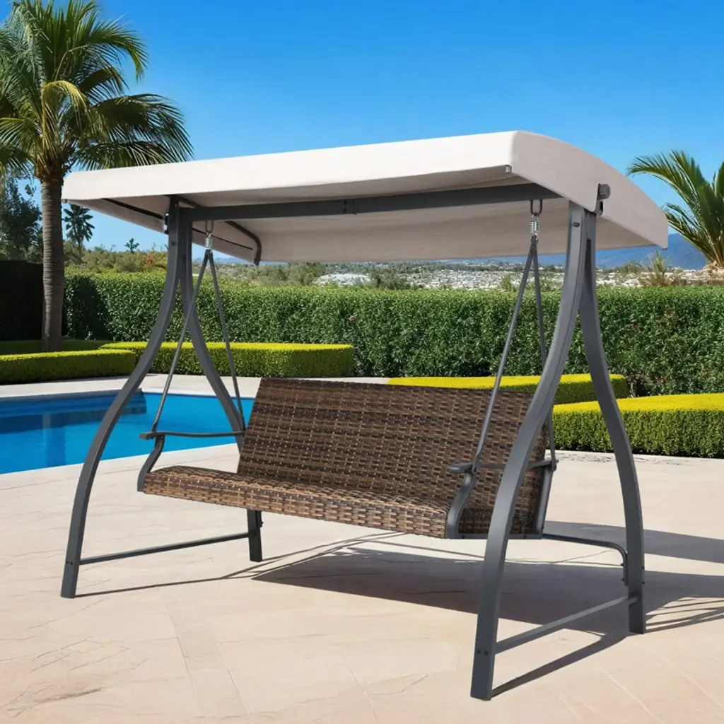 Transform your patio into an oasis of relaxation with our exquisite Premium Rattan Patio Swing. Crafted with meticulous attention to detail, it seamlessly blends timeless elegance and remarkable durability, promising you a luxurious and comfortable outdoor experience every day, perfect for unwinding after a long day or hosting intimate gatherings under the stars.