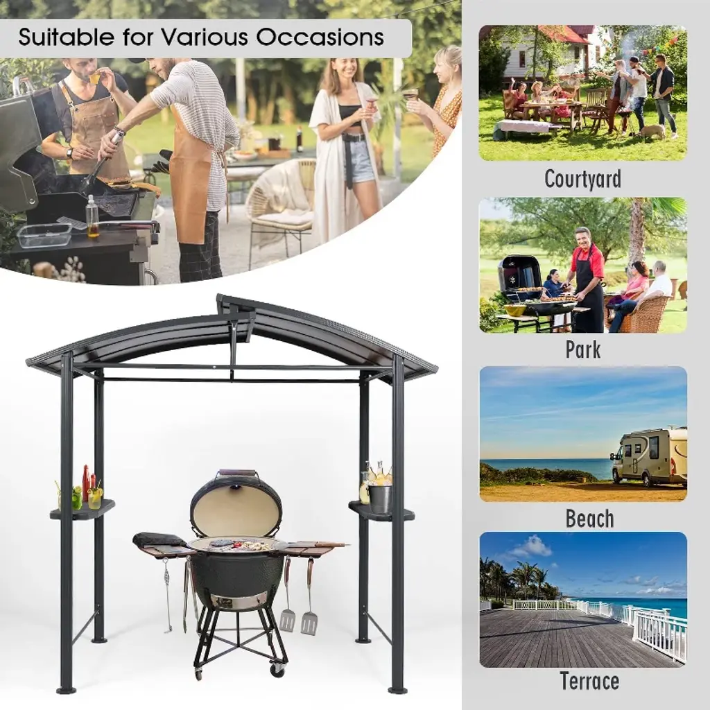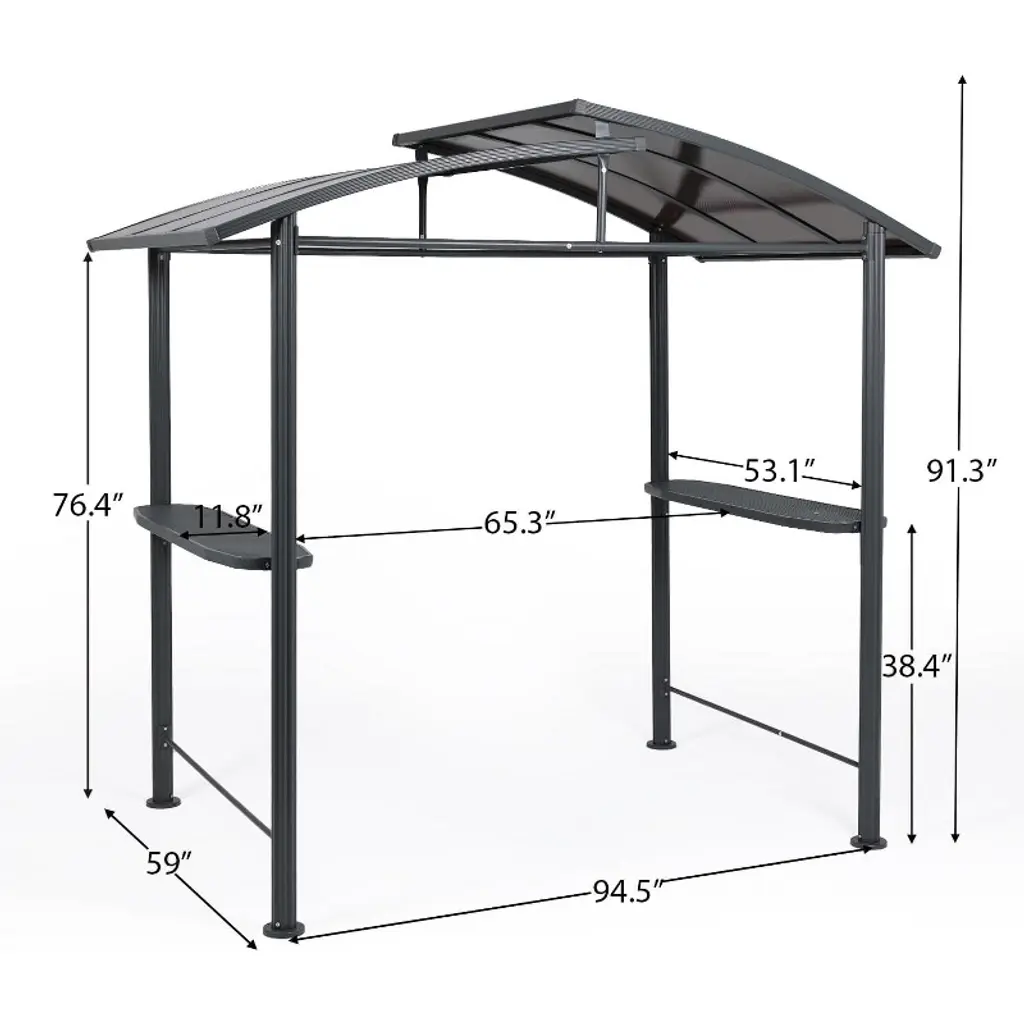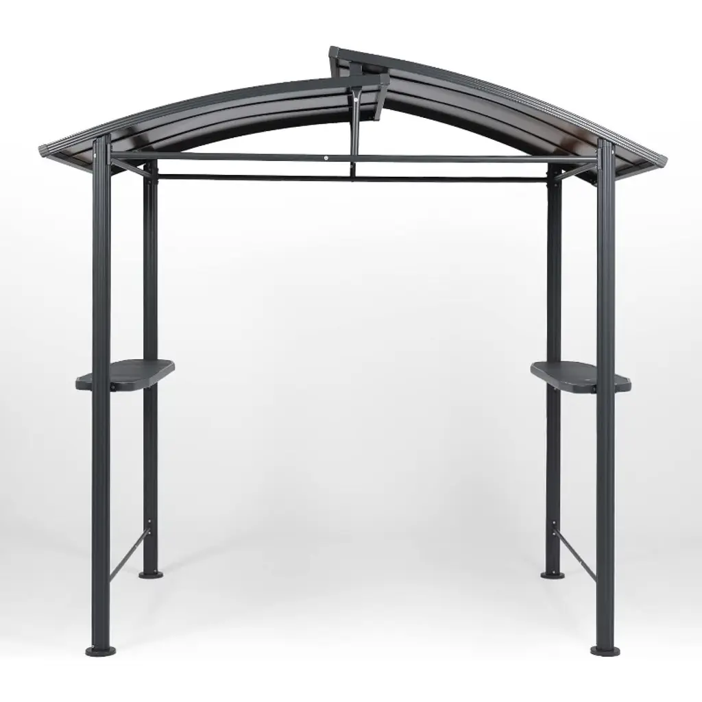 Aoodor 8 x 5 ft. BBQ Grill Gazebo Shelter, Dark Gray Steel Frame and Brown Double-Tier Polycarbonate Top Canopy. Aoodor BBQ grill gazebo created with high-quality steel and a rust-resistant powder coating, protects you from rain and hot, glaring sun alike, enabling you to comfortably use your outdoor grill, regardless of weather. It will be the focal point of your outdoor entertaining season after season.