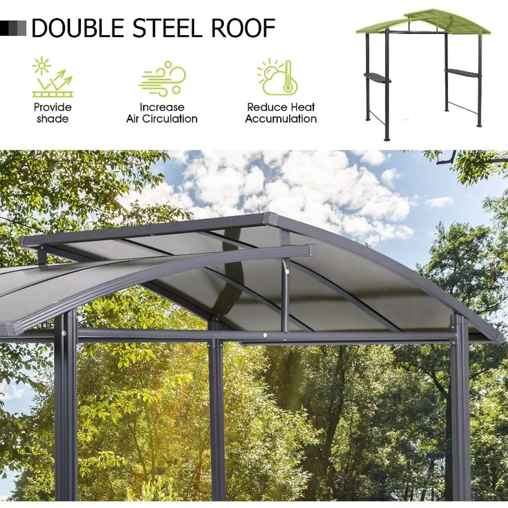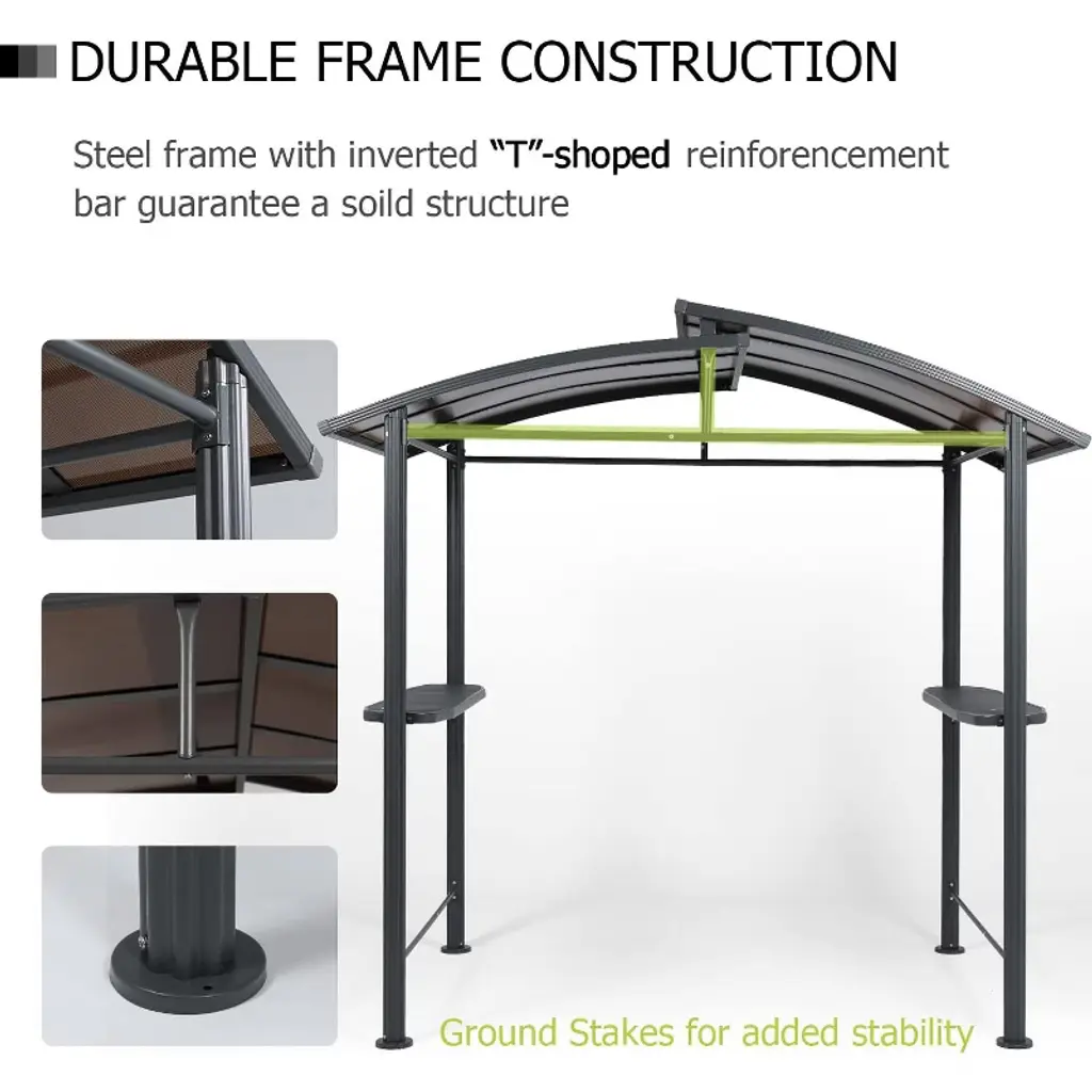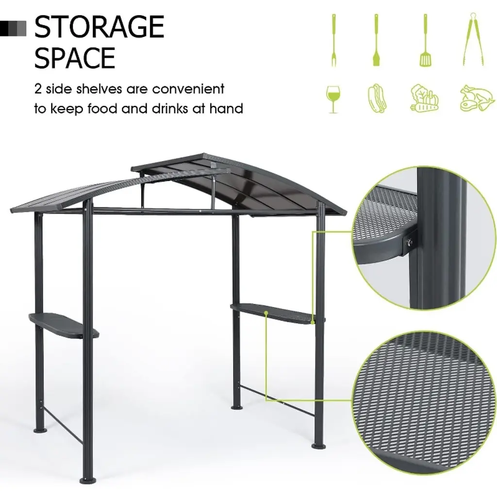 Aoodor 8 x 5 ft. BBQ Grill Gazebo Shelter, Dark Gray Steel Frame and Brown Double-Tier Polycarbonate Top Canopy. Aoodor BBQ grill gazebo created with high-quality steel and a rust-resistant powder coating, protects you from rain and hot, glaring sun alike, enabling you to comfortably use your outdoor grill, regardless of weather. It will be the focal point of your outdoor entertaining season after season.