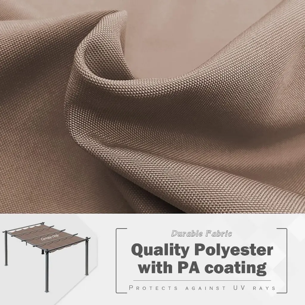 Aoodor 10 x 13 ft Replacement Adjustable Canopy, Retractable Shade for Pergola, UV Resistant and Fade-Resistant, Brown