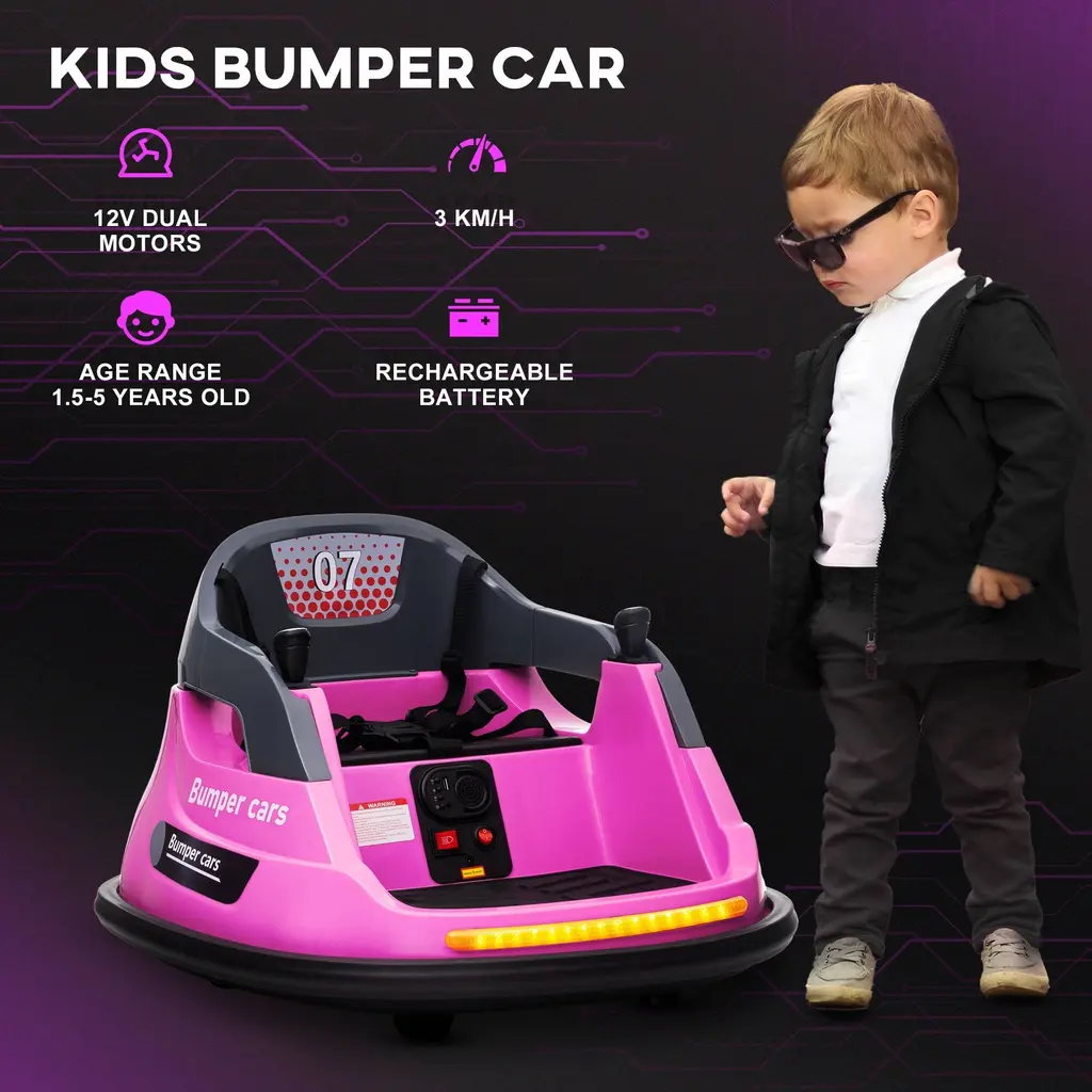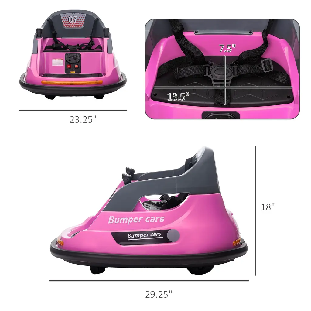 Aosom 12v Bumper Car For Kids 1.5-5 Years Old, Electric Ride On Bumper With 360 Degree Spin - 2-4 Years - Pink