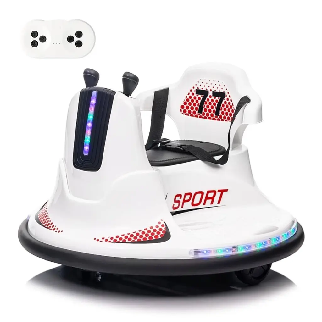 Explore fun and freedom: SHINY FURNITURE toy cars for kids!SHINY FURNITURE kids toy car is the ideal choice to inspire children's unlimited imagination and vitality. Whether running around the yard or exploring the park, our toy cars are designed to provide safety, comfort and endless fun.Product FeaturesChild Driven or Remote Control: Kids can drive the bumper car with side joystick controls. Or take control of the electric cars for kids with remote control. The remote is equipped with forward or reverse controls, and steering operations.Realistic Feel: Styled with a number like a real amusement park bumper car, this electric ride-on toy brings the thrill of the park to your driveway, featuring a realistic appearance like the classic ride that has your kid's name on it. The built-in music and light-up LED edging make the ride awesome.360° Rotation: Turning in circles is proved to be fun by the number of popular amusement park rides that rotate and spin. Each piece is loved by kids, and this bumper car toy has the 360° that little thrill-seekers don't get tired of, featuring joysticks for controls.Safety First: This ride-on car is ASTM F963, CPSIA, and SOR certified. The seatbelt safety ensures kids stay in place, while the top handle allows you to grab the car in case you need to assert your control. Better yet, the parental remote allows you to step in and take over the joystick.Bumper Car Information: Overall Dimensions: 30" L x 25.25" W x 17.75" H. Recommended Ages: 24-60 months. Battery: 12V 4.5 Ah. Certification: ASTM F963, CPSIA, SOR, FCC. Note: Always Monitor Your Child While They Are Riding. 2 x AAA Batteries Not Included.ConclusionSHINY FURNITURE kids toy car is not only a toy, but also a companion and inspiration for children on the road of growth. Choose SHINY FURNITURE to keep your child alive and happy on every ride!
