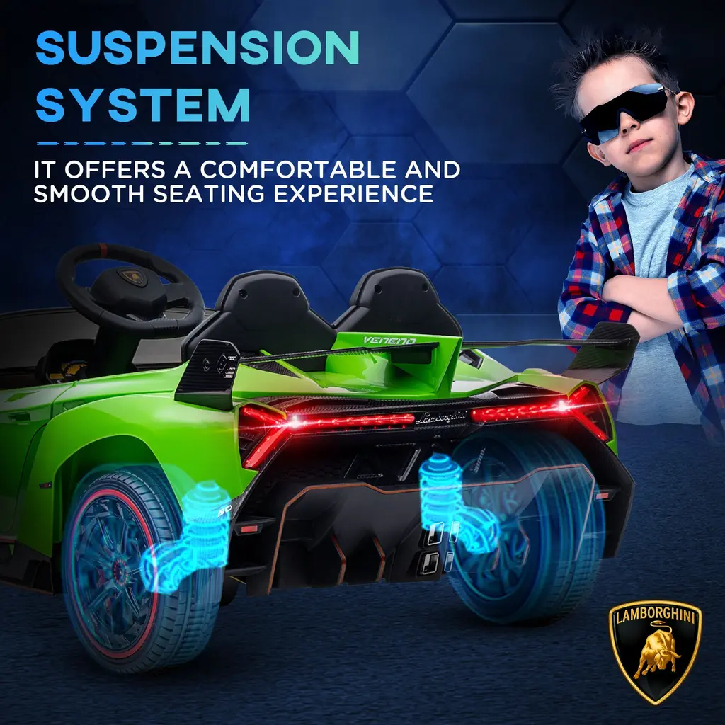 Aosom Lamborghini Veneno Licensed Kids Electric Car With Bluetooth, 12v Ride On Car With Butterfly Doors - Green