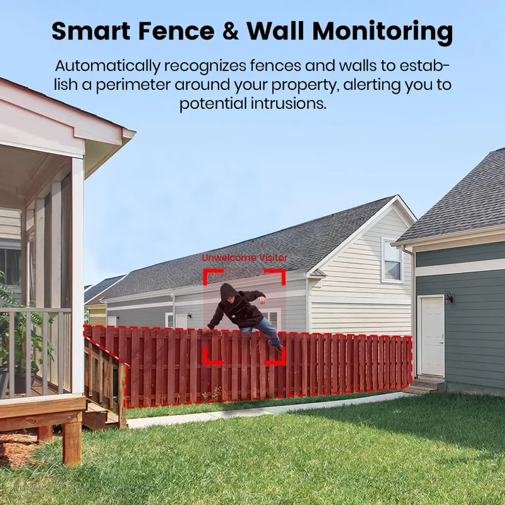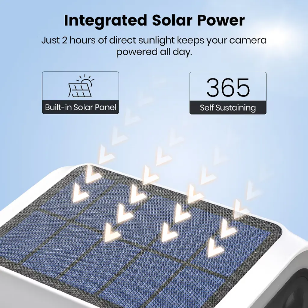 Family safety is aosu's top priority. We're dedicated to protecting what matters most to you by offering smart security solutions that combine simplicity with cutting-edge technology. Experience complete home coverage with this aosu 4K UHD solar security camera. Capture every detail in stunning 4K resolution, and with a 6x zoom, even distant objects are brought into clear view. Intense white spotlights provide full-color imagery even in darkness, ensuring your home is secure day or night. Solar-powered, when the camera gets just 3 hours of direct sunlight to charge the battery, it will operate day and night. When motion is detected, the spotlight can be triggered manually or motion-activated to always ensure clear imagery. Easily connect it via Bluetooth® to stable 2.4 GHz Wi-Fi. The camera is compatible with Alexa® and Google Assistant. aosu focuses on family security and privacy protection - all images and videos are encrypted, ensuring that no one can access the information without your consent._