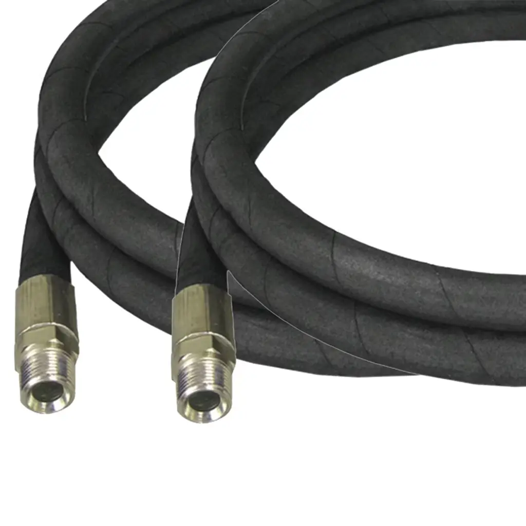 Transfer liquid from place to place with the Apache 1-Inch Diameter 14-Foot Length Farm Fuel Hoses. These fuel transfer hoses have a compact and durable design that easily maneuver in cramped quarters without kinking up, perfect for ethanol, diesel, B10/20 biodiesel, kerosene, and more. Great for moving liquid hot and cold alike, these hoses have a temperature range between -20 degrees Fahrenheit to 160 degrees Fahrenheit. These fuel transfer pump hoses are made from black nitrile rubber and internal spring guards that prevent kinking. They're coupled with crimped male fittings on each end and built-in static wire to dissipate static electricity associated with electric pumps. Additionally, the spiral synthetic yarn reinforcement adds strength for long-lasting use. Lightweight, durable, and dependable, this farm fuel transfer hose is perfect for a variety of uses both personal and professional. Hose assembly for transferring gasoline with up to 15% ethanol, diesel, kerosene, or oil in manual pump or gravity flow dispensing operations Nitrile synthetic rubber tube and cover for resistance to oil, solvents, abrasion, and weathering Spiral synthetic yarn reinforcement for strength and coupled with crimped male fittings on each end Internal spring guards prevent kinking at the fittings and help extend the life of the hose Temperature range: -20 degrees Fahrenheit to 160 degrees Fahrenheit Color: Black Dimensions (Length): 14 feet Inside diameter: 1-inch Weight: 7.8 pounds Manufacturer warranty: 30-day manufacturer warranty Quantity: 4