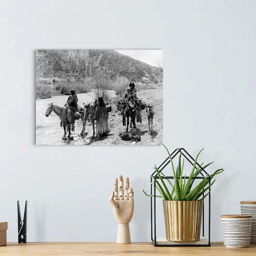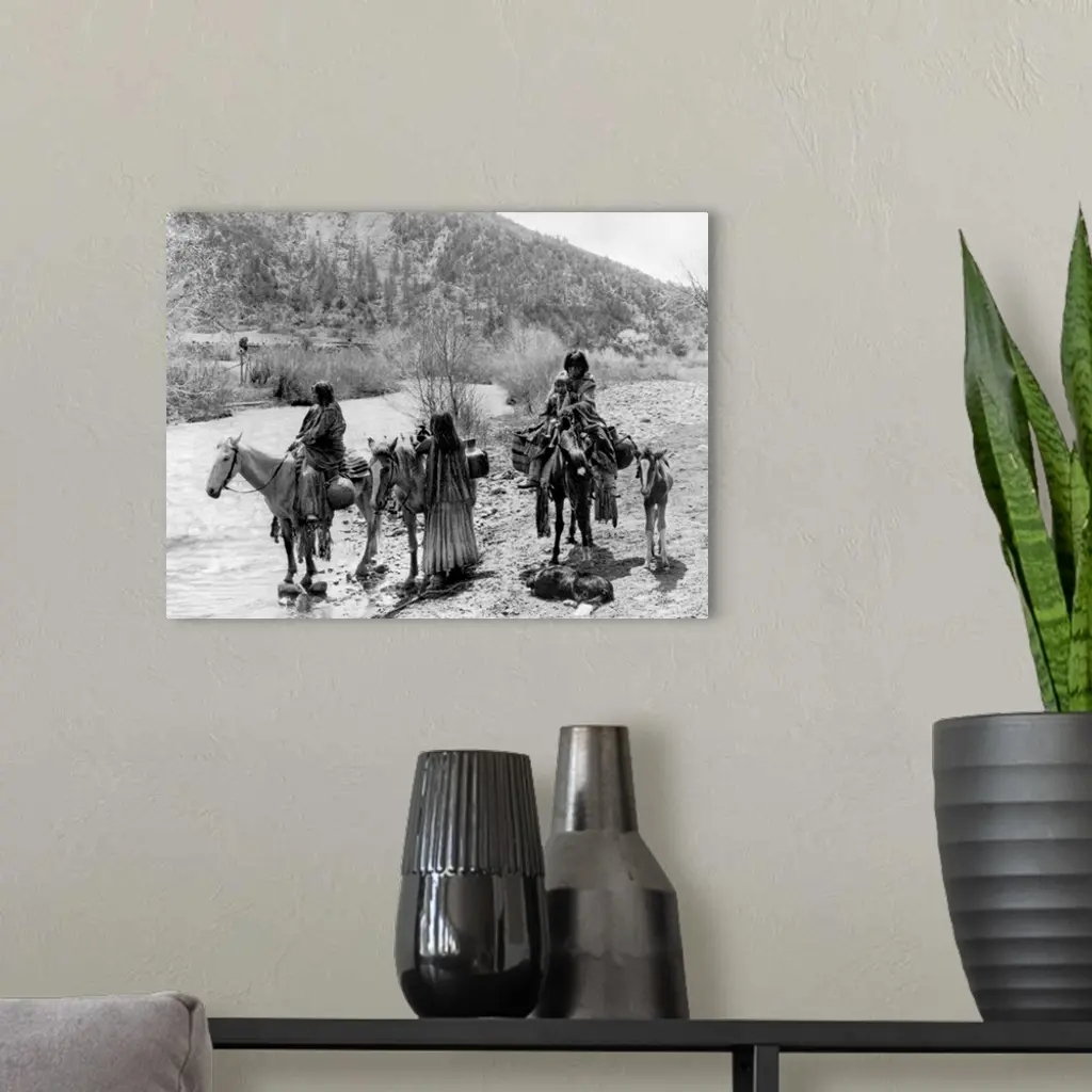 Apache Group, C1906. Group Of Apache Men And Women, One With A Child, With Horses Laden With Water Jugs, Near A Stream. Photograph By Edward Curtis, C1906.