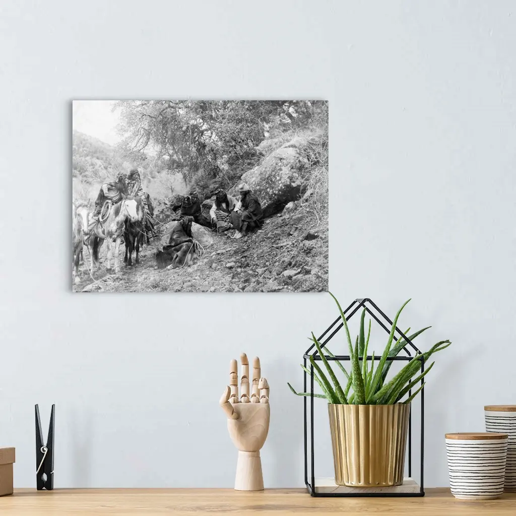Apache Men, c1906. 'Storytelling.' An Apache Man Marks the Ground With A Stick While Others Look On. Photograph By Edward S. Curtis, C1906.