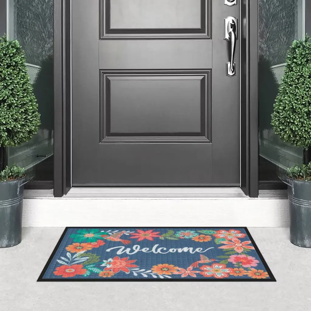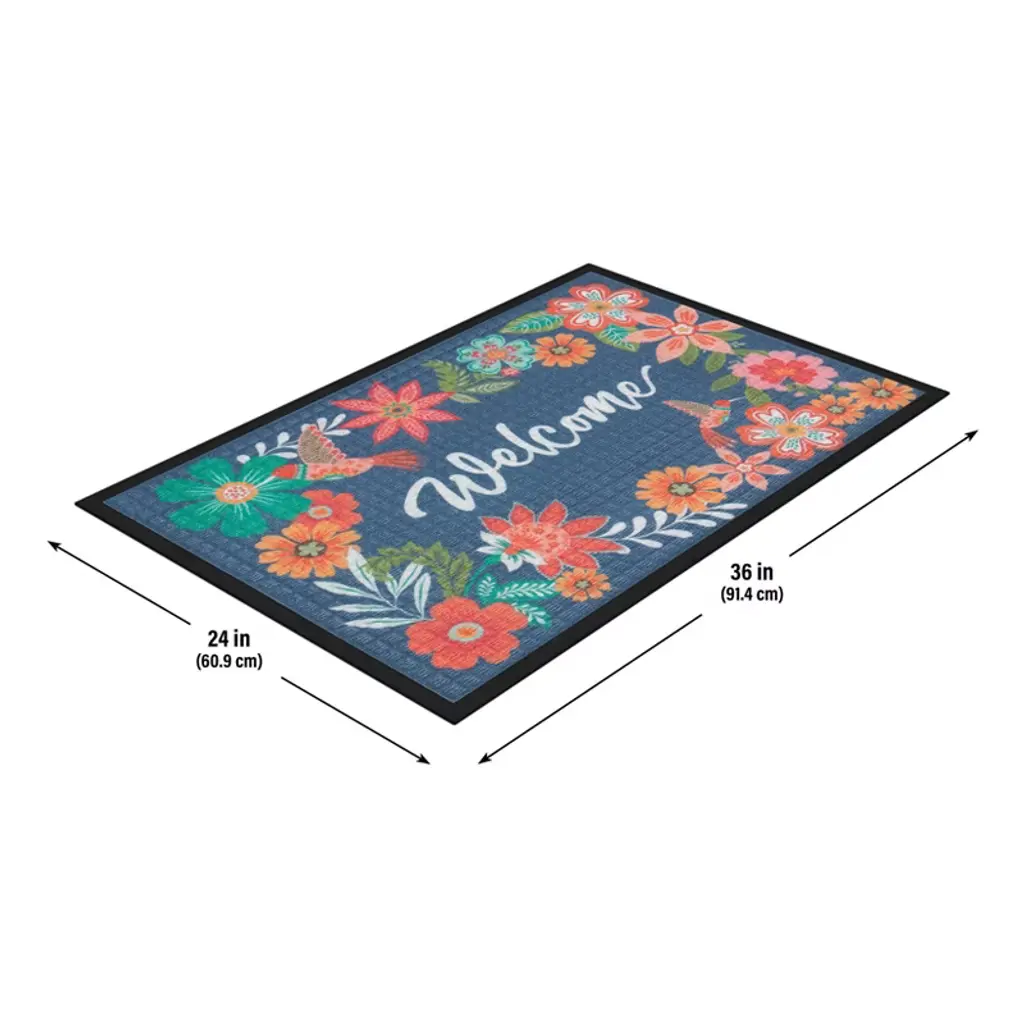 Fashion meets function with the Boho Hummingbird Welcome Door Mat. Featuring a colorful print on a durable, commercial-grade polyester carpet and molded rubber base, these mats are the perfect way to bring style to high-traffic areas. The needle punch carpet surface offers excellent absorption and dries quickly, while the phthalate-free natural rubber backing offers skid resistance. The rubber-reinforced squares and raised rubber border remove and trap dirt and moisture, and increase the mat’s lifespan for long-lasting performance.