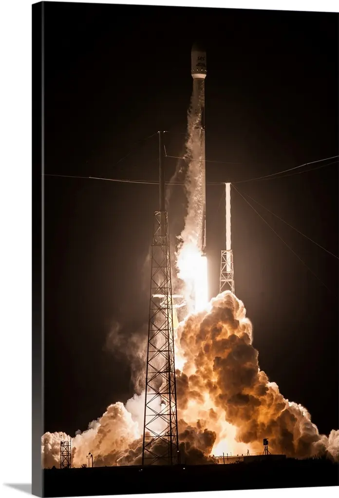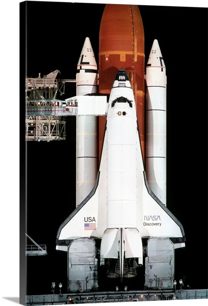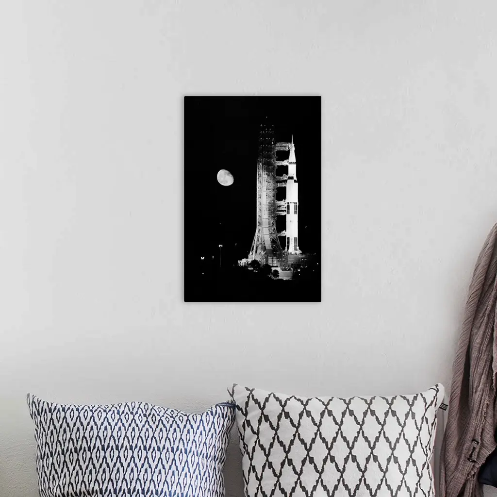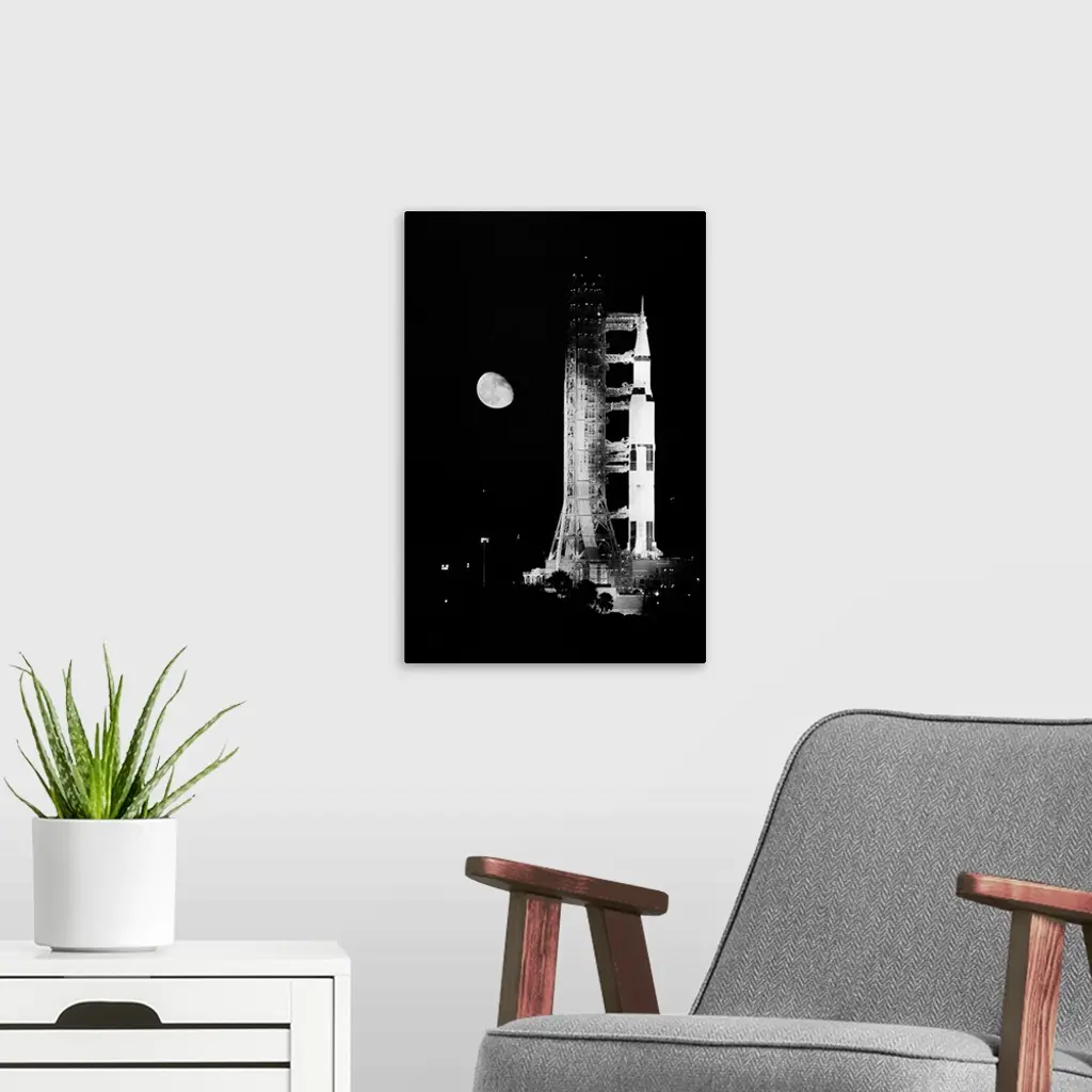 Kennedy Space Center, Fla. Mounted atop a Saturn 5 rocket, the Apollo 11 spacecraft in which Neil Armstrong and Buzz Aldrin Jr. will land on the moon stands ready for liftoff as its target rises in the night sky over the Space Center here. The historic landing is set for early July 20th.